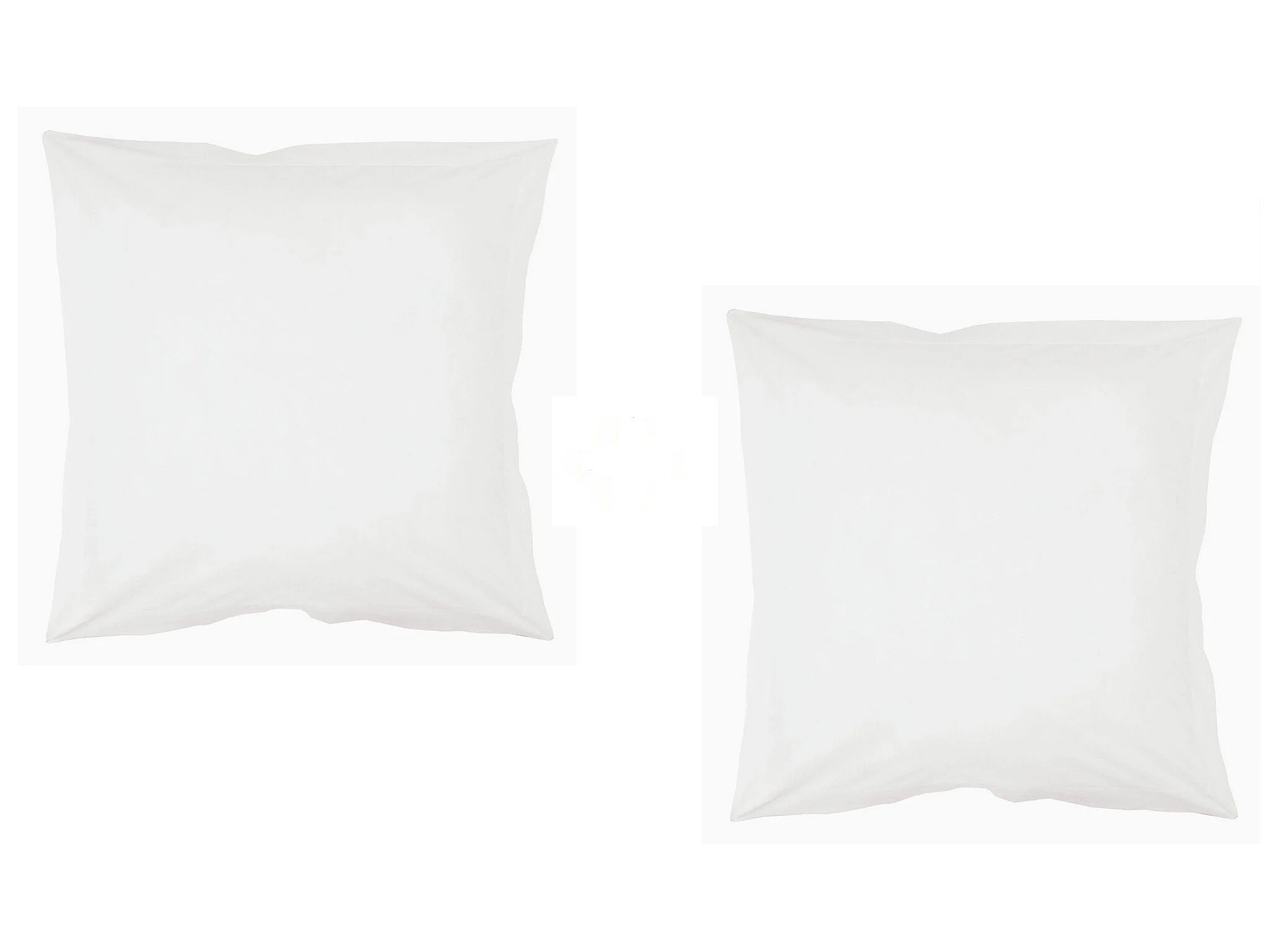 Lot de 2 Taies d'Oreillers 100% Coton Blanc 63x63 cm Volant Plat