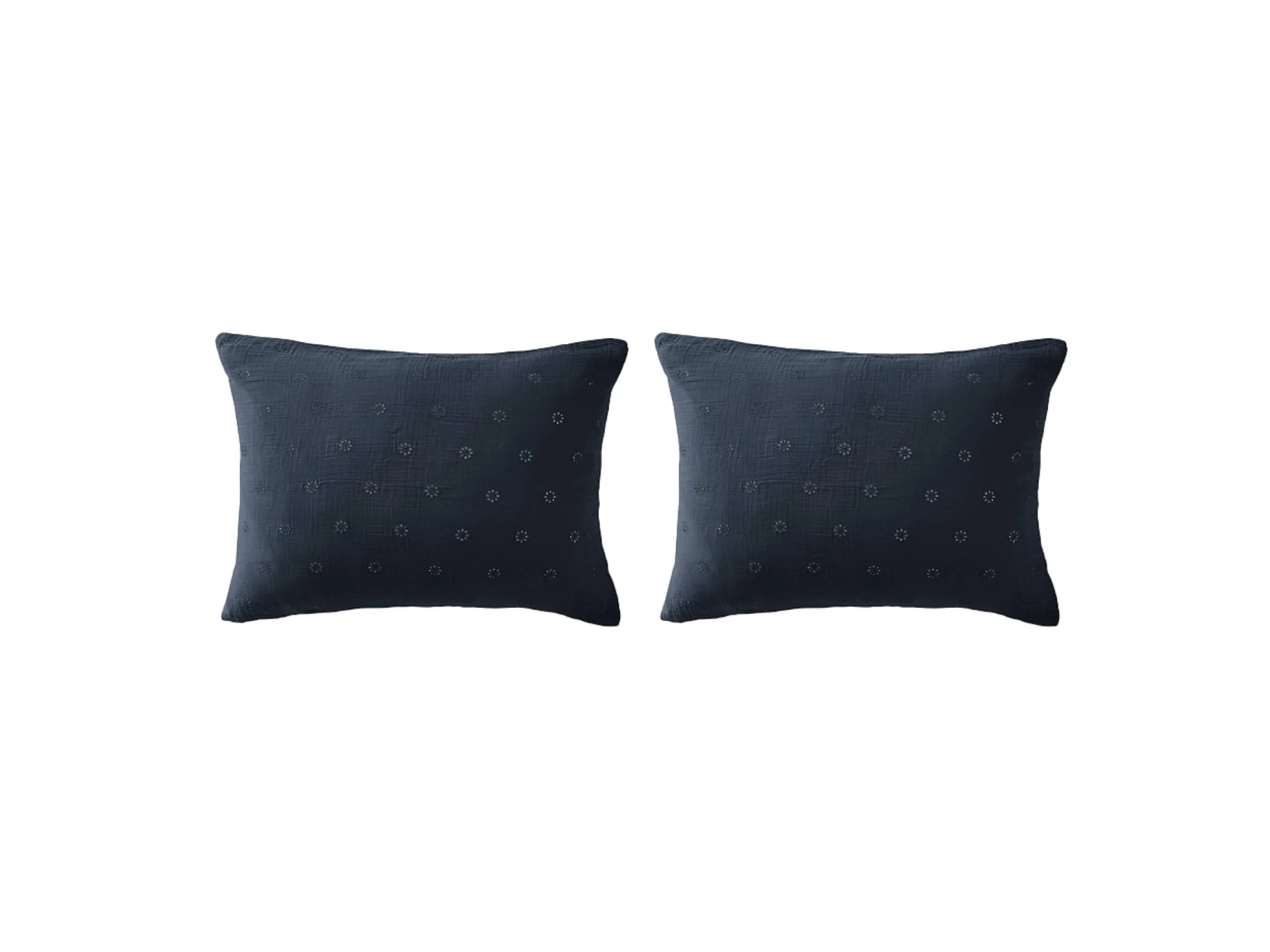Lot de 2 taies d'oreillers brodées double gaze de coton marine 50x70