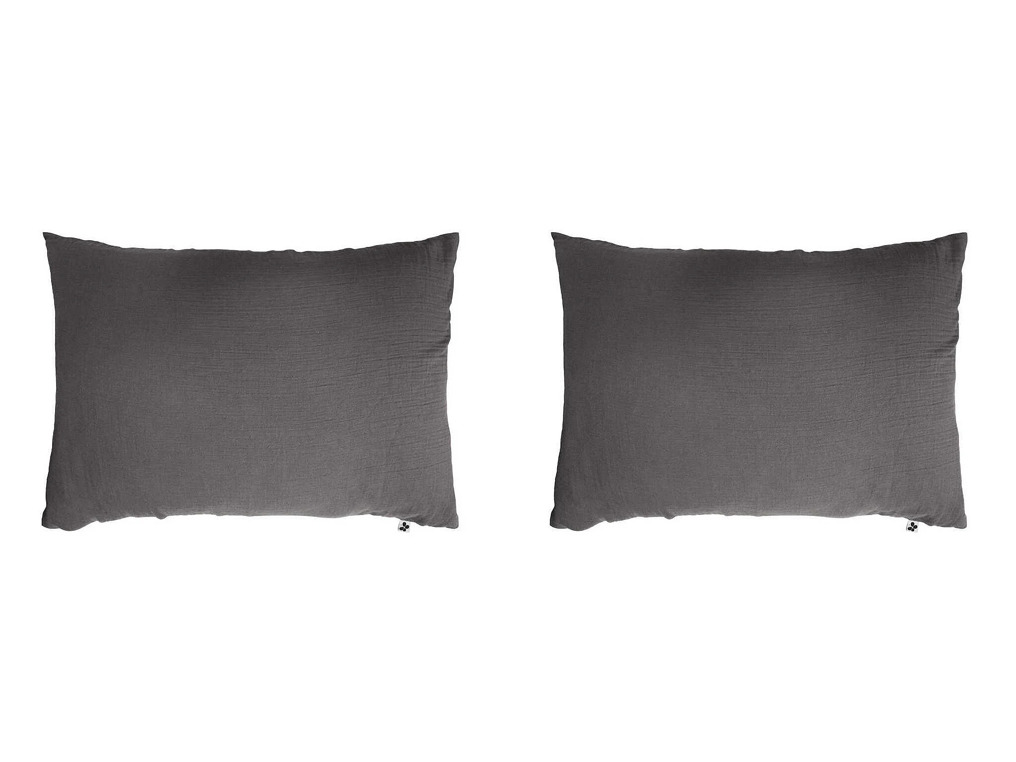 Lot de 2 taies d'oreillers double gaze de coton gris anthracite 50x70 cm