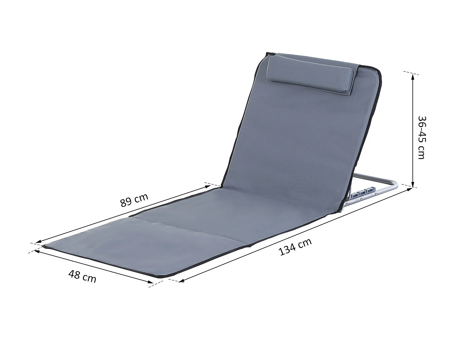Lot de 2 tapis de plage rembourré - matelas de plage - nattes de plage - dossier inclinable multi-positions - sac transport inclus - métal polyester PE gri