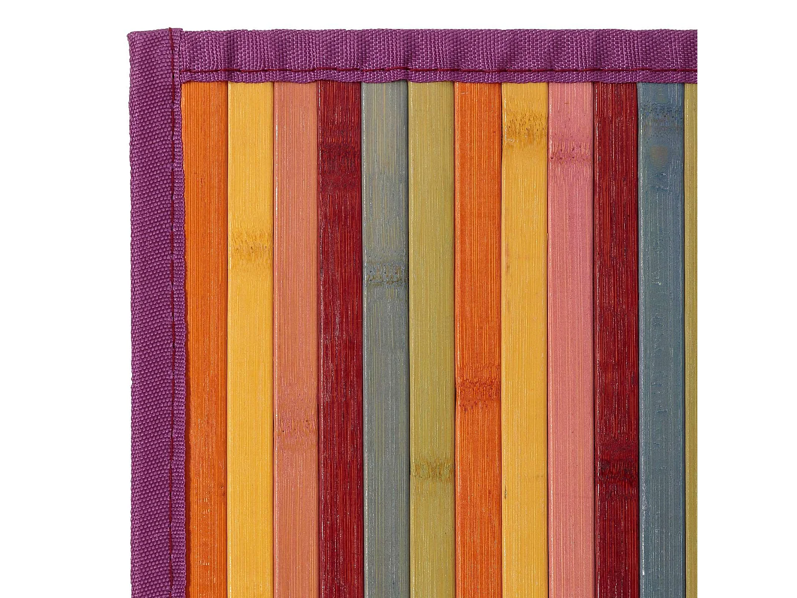 Lot de 2 tapis de sol antidérapant, moquette à rayures en bambou coloris multicolore - Longueur 90 x Profondeur 60 cm