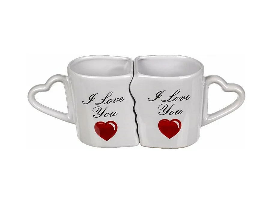 Lot de 2 tasses mug encastrables "I love you" 250 ml - Blanc - D 8 x H 10 cm