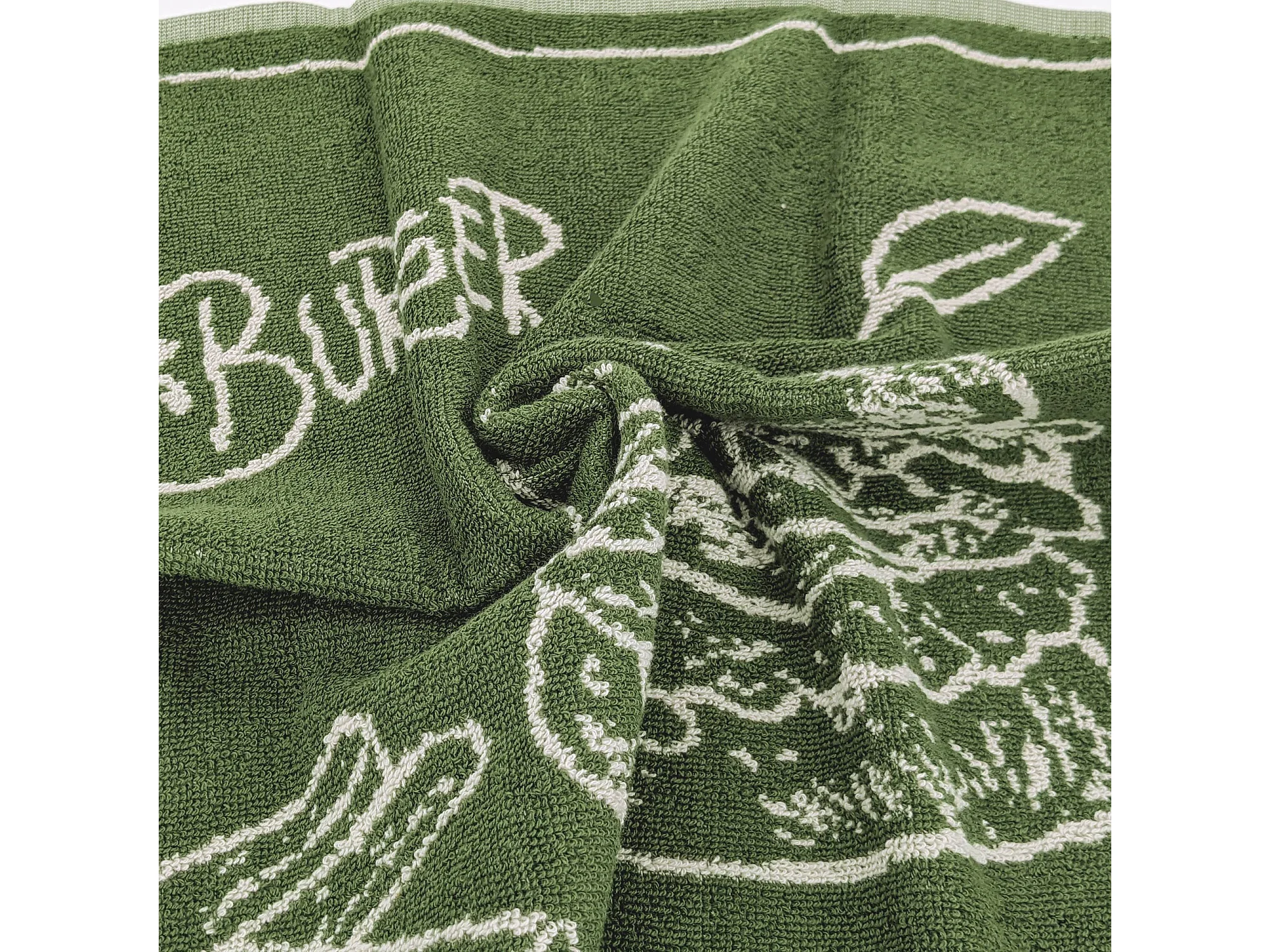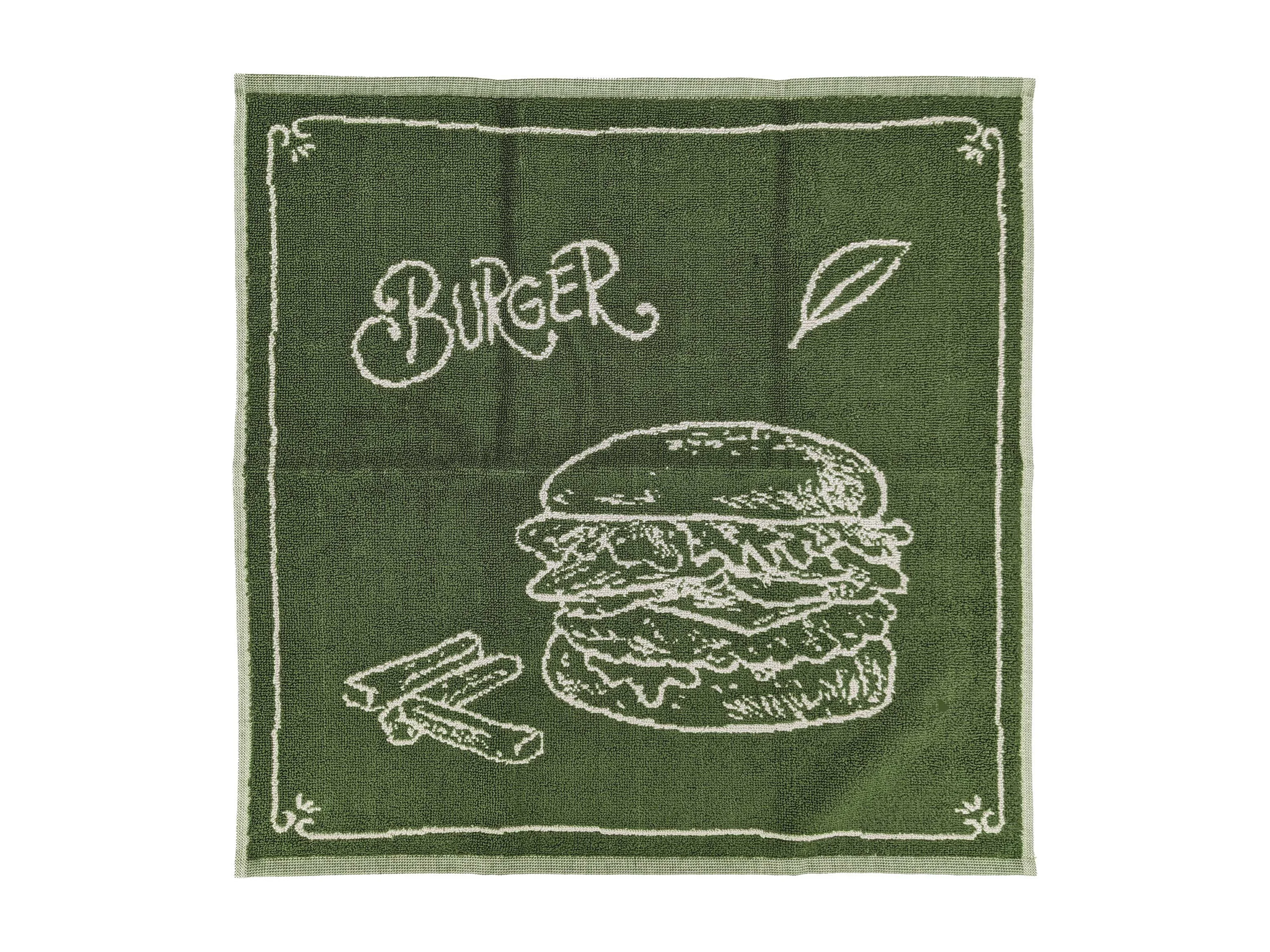 Lot de 2 torchons de cuisine pur coton 50x50 cm motif burger collection BURGER vert