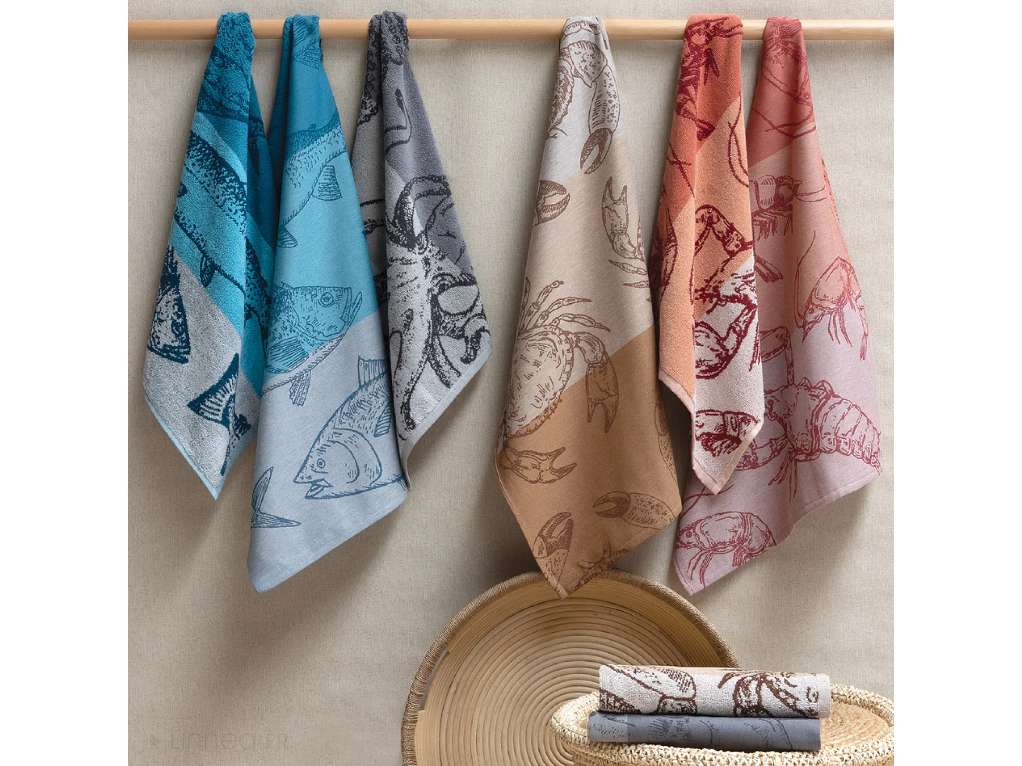 Lot de 2 torchons de cuisine 50x70 cm coton ATLANTIC motif crabe beige