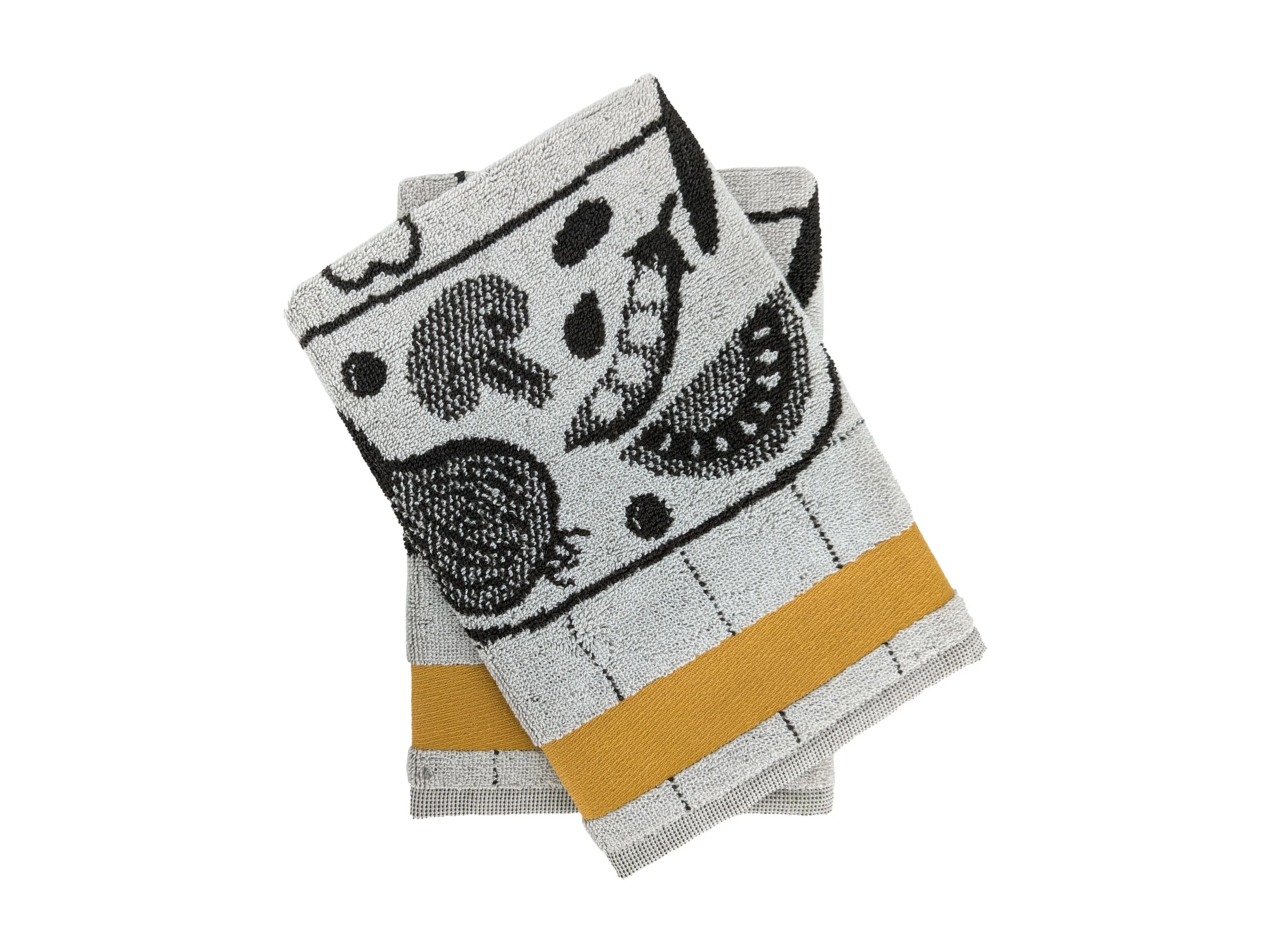 Lot de 2 torchons de cuisine 50x50 cm coton SALAD motif thème salade marron
