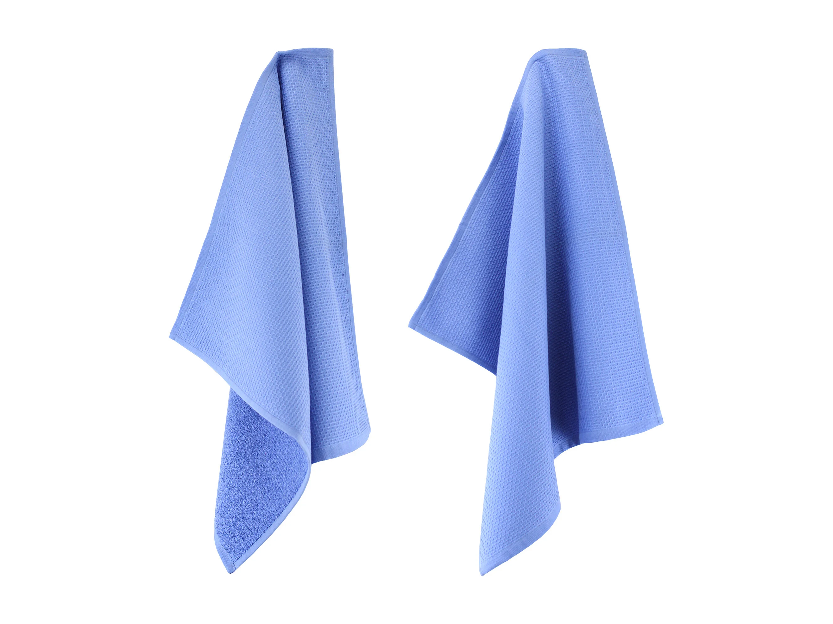Lot de 2 torchons de cuisine 50x50 cm éponge PURE KITCHEN TERRY Bleu Mer