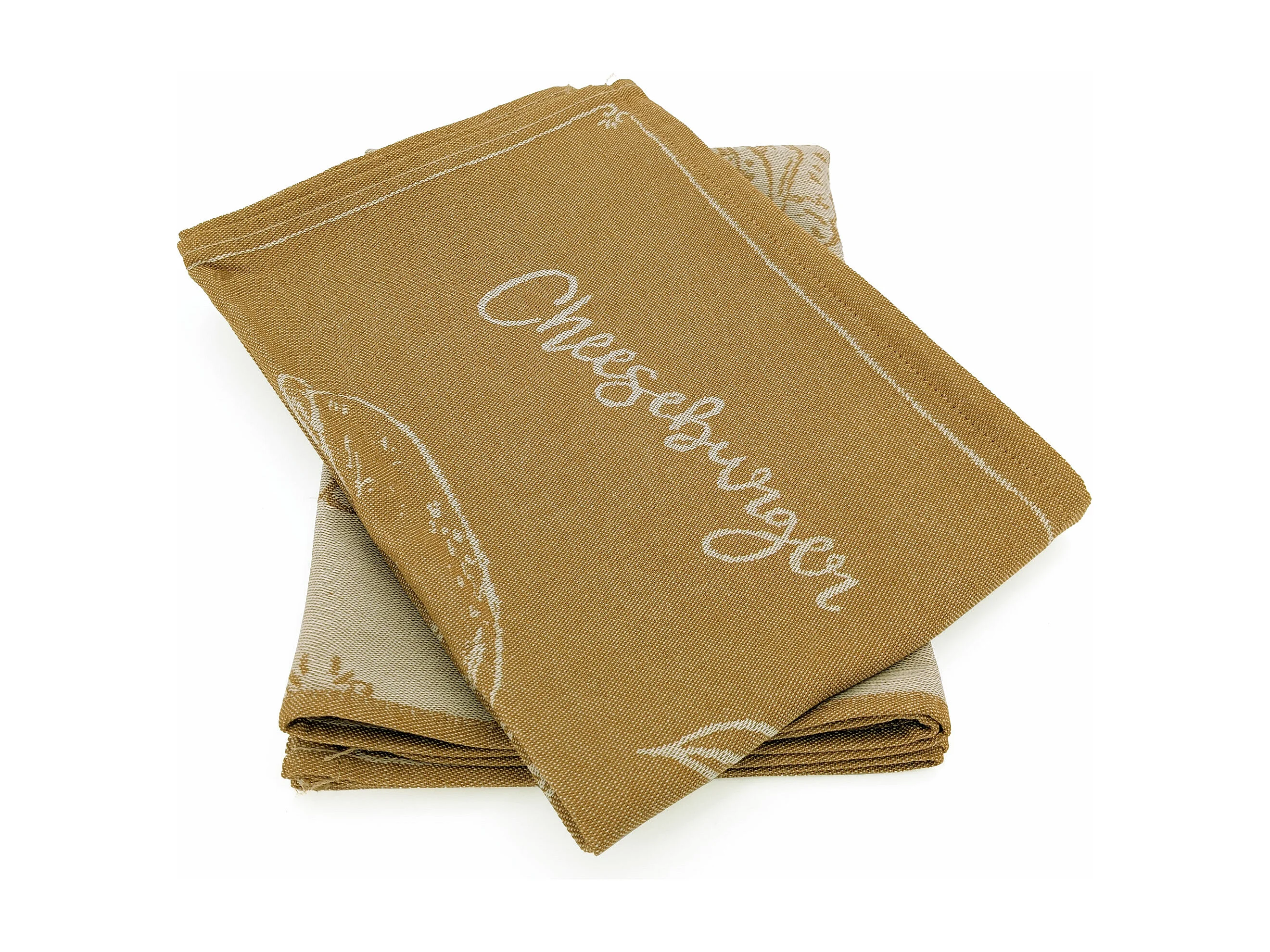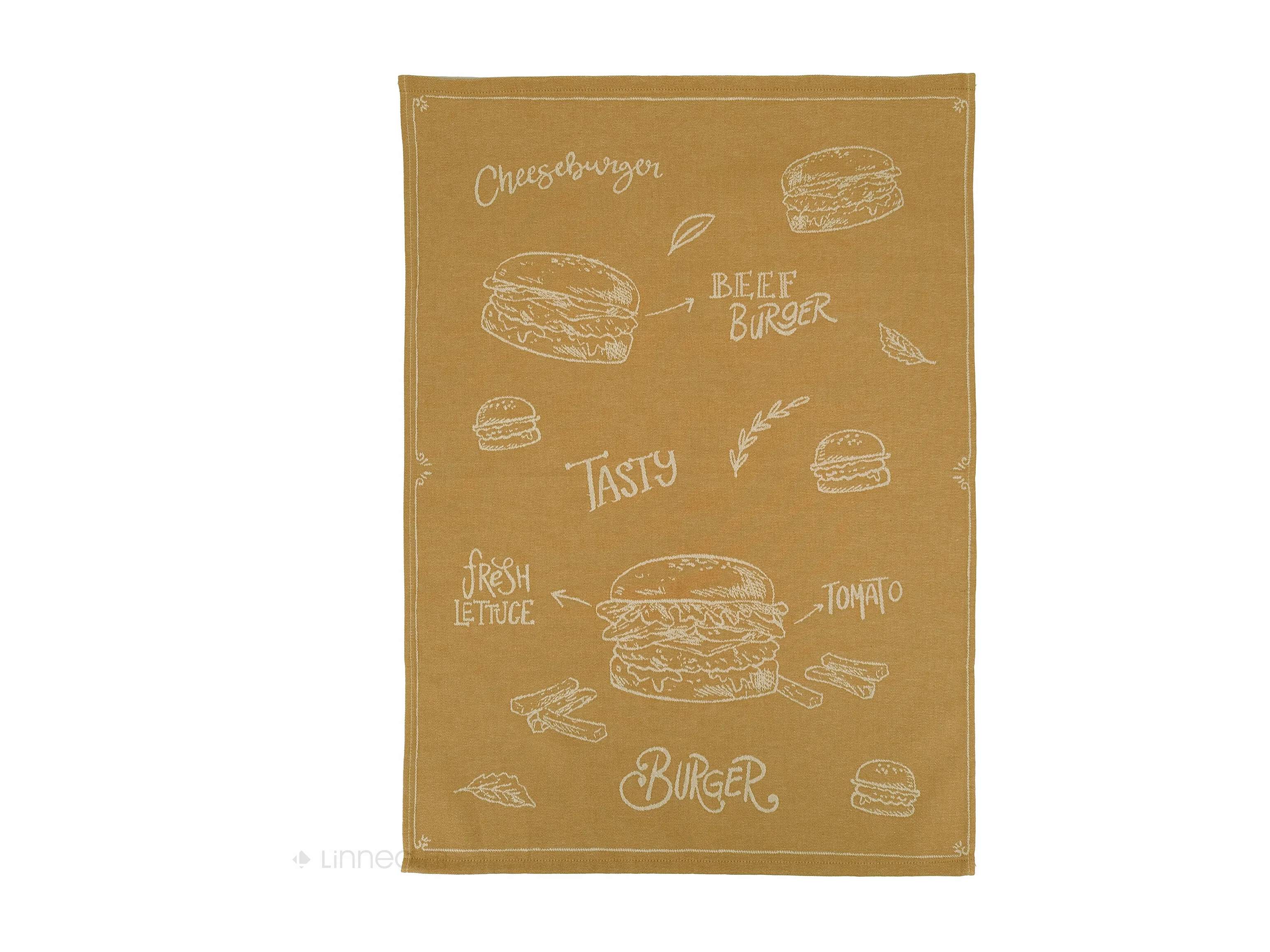 Lot de 2 torchons de cuisine pur coton 50x70 cm BURGER jaune