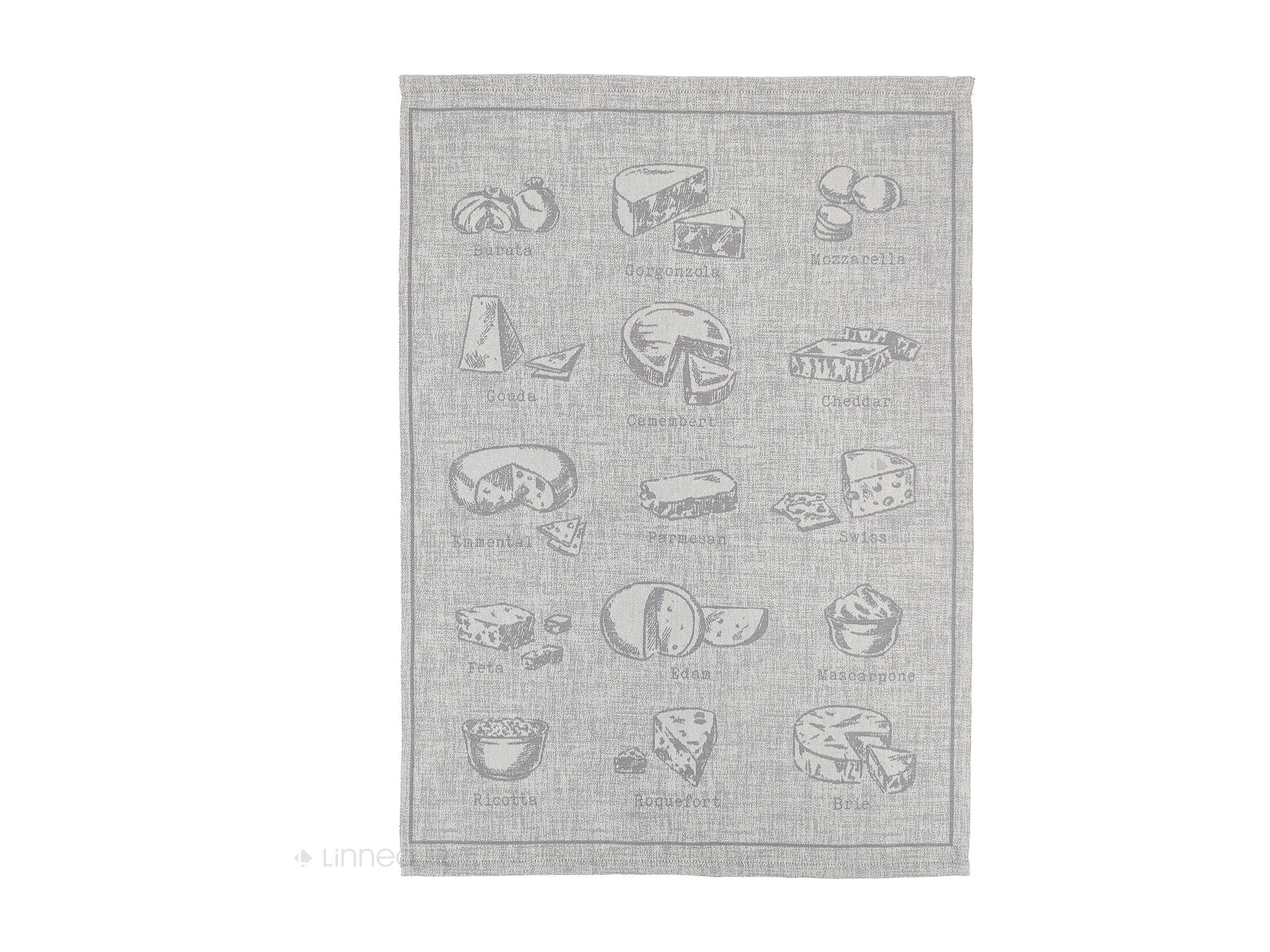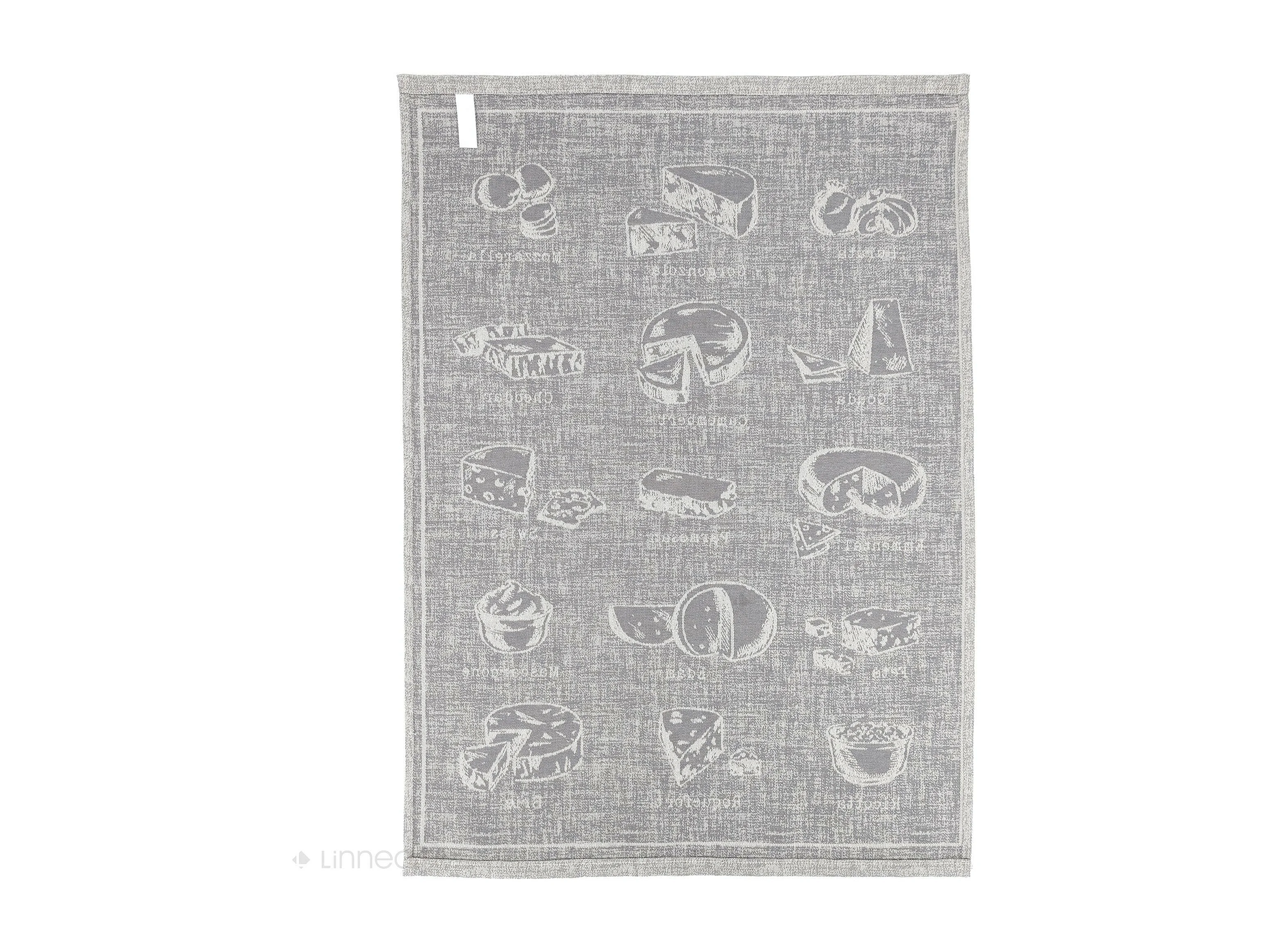 Lot de 2 torchons de cuisine pur coton 50x70 cm motif fromage collection CHEESE gris