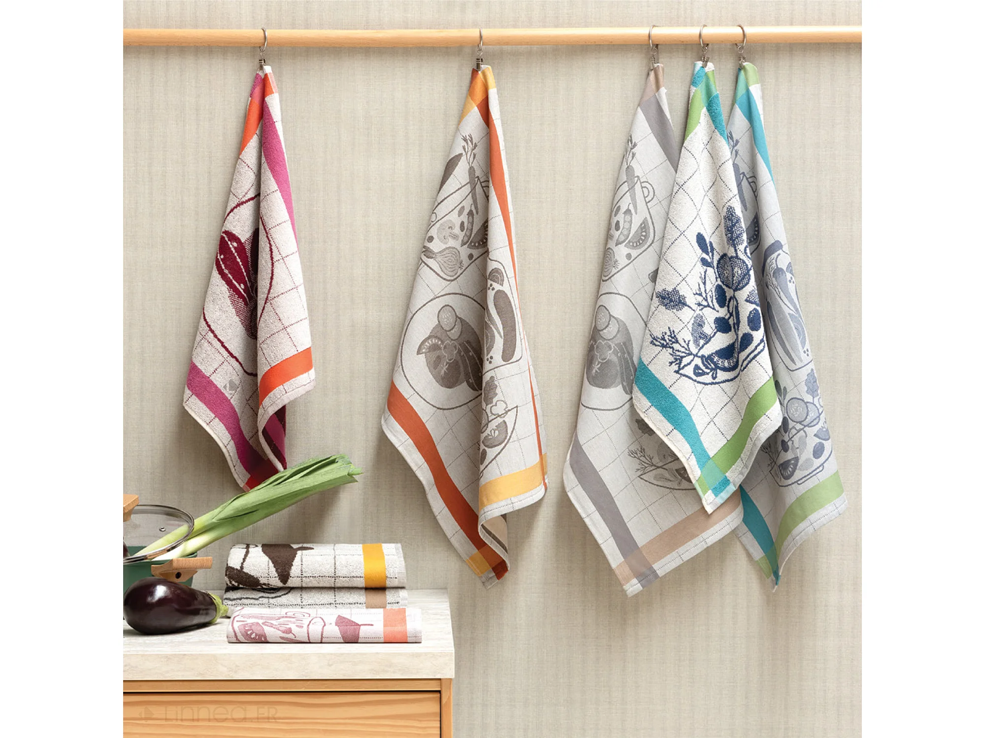 Lot de 2 torchons de cuisine 50x70 cm coton SALAD motif thème salade marron