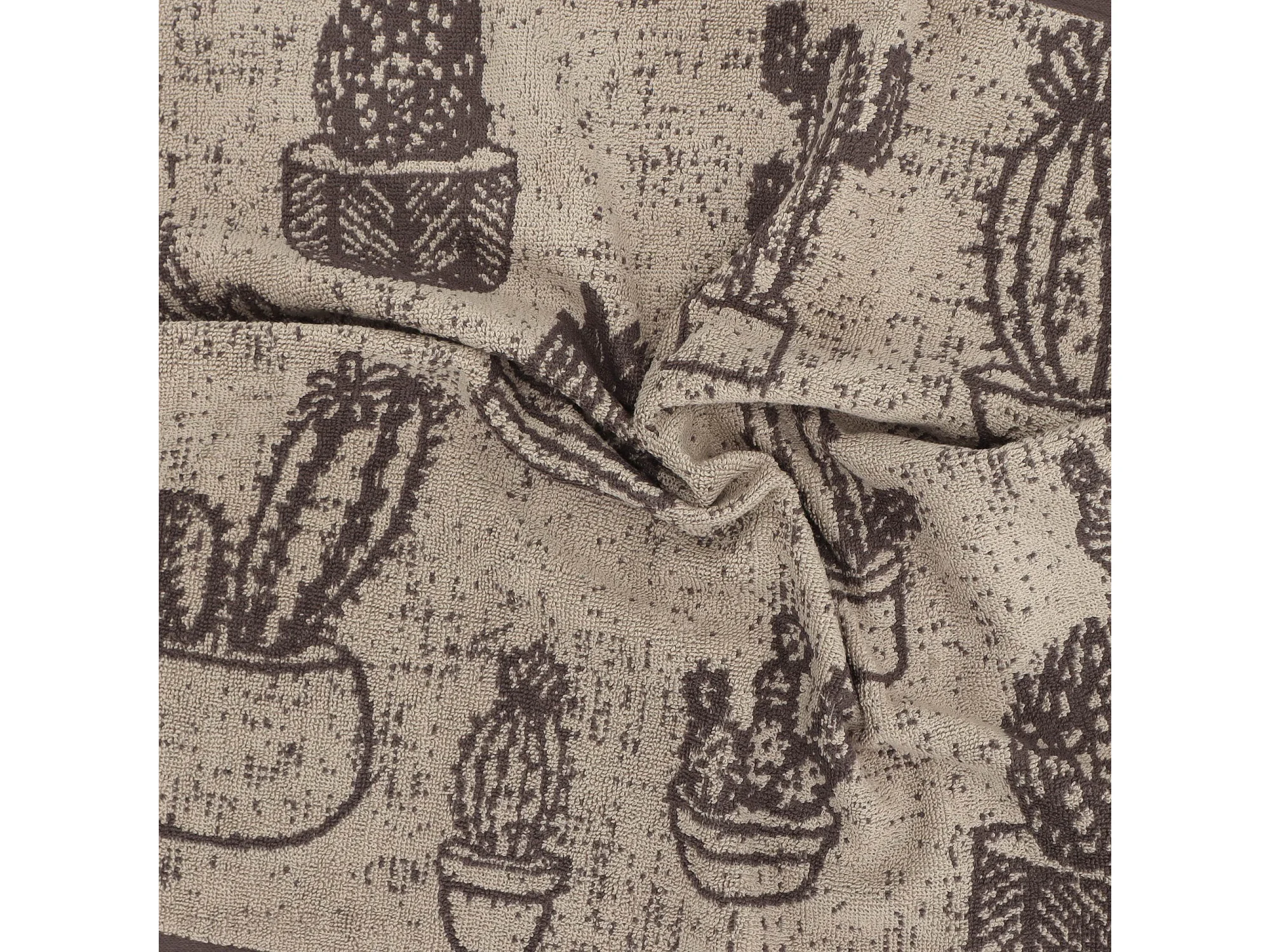 Lot de 2 torchons de cuisine éponge 50x50 cm coton CACTUS marron