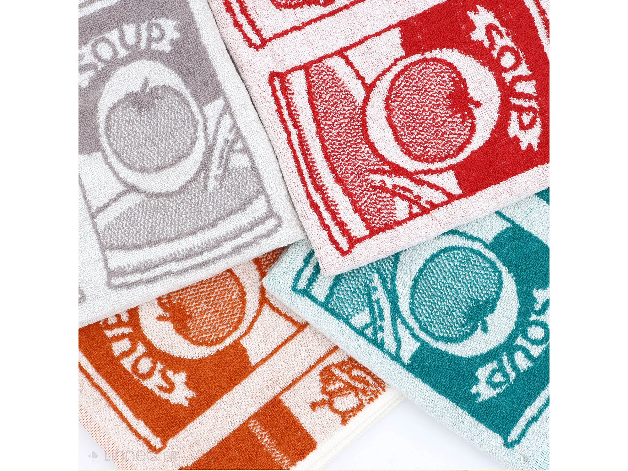 Lot de 2 torchons de cuisine éponge 50x50 cm coton SOUP rouge