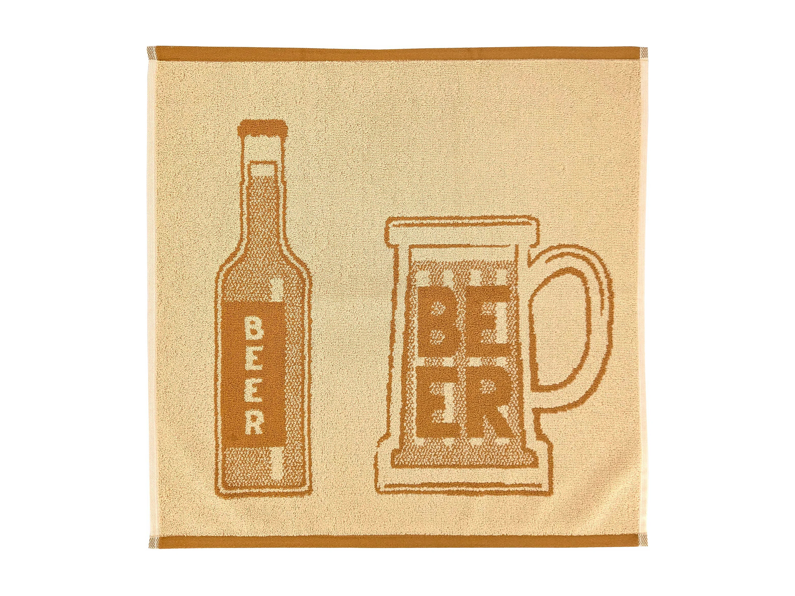 Lot de 2 torchons de cuisine pur coton 50x50 cm BEER motif de bières jaune