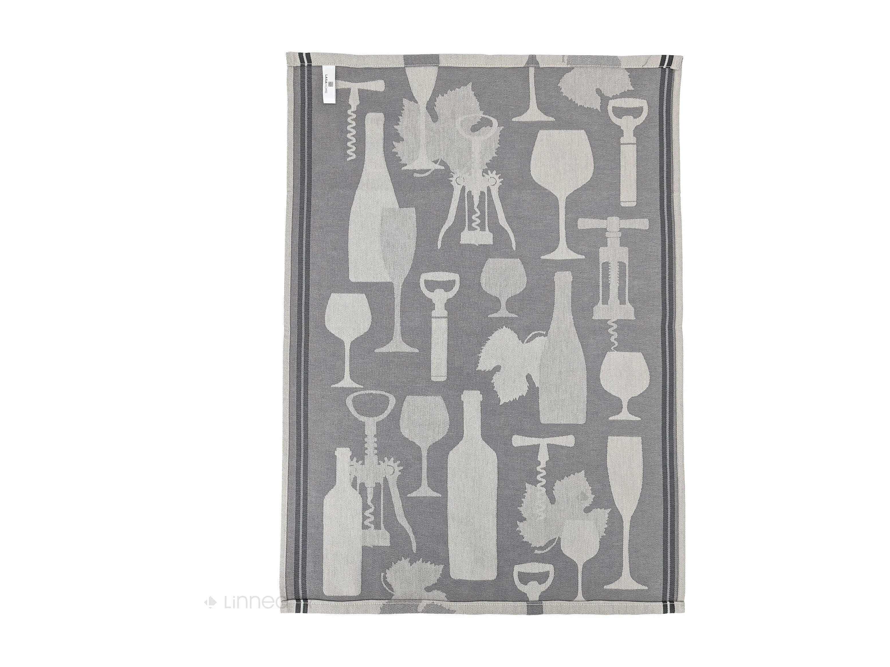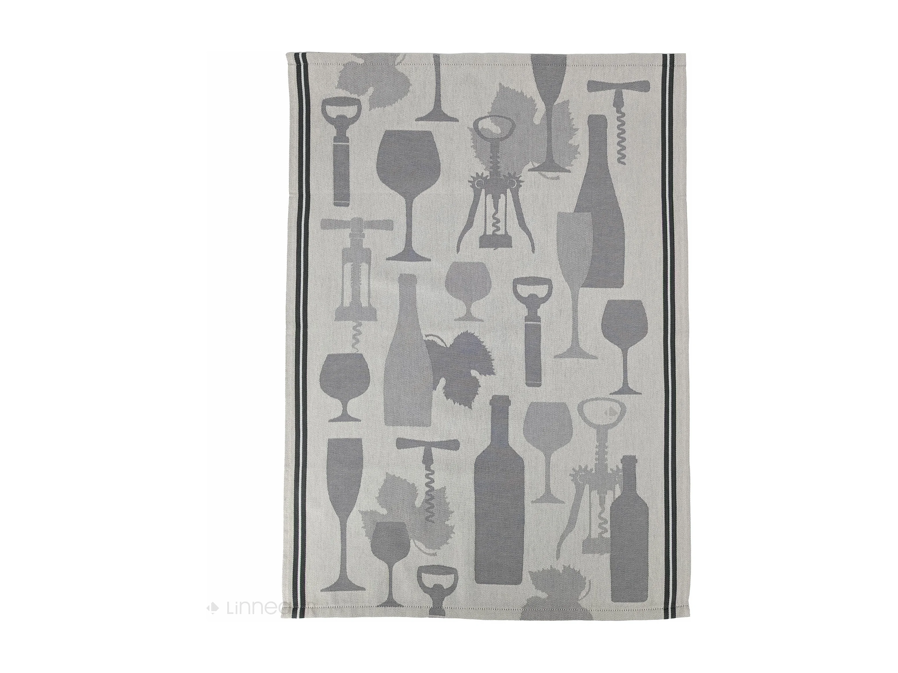 Lot de 2 torchons de cuisine pur coton 50x70 cm VITIS motif viticole gris