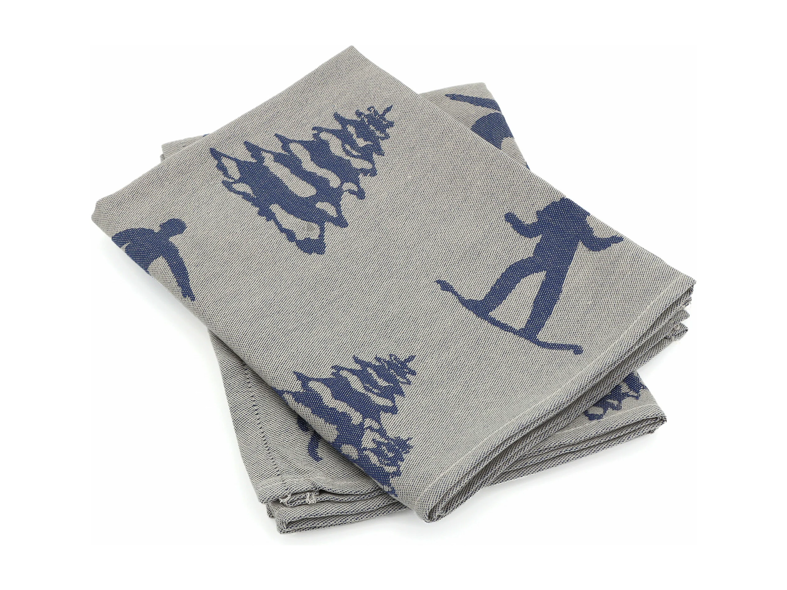 Lot de 2 torchons de cuisine toile 50x70 cm coton SKI bleu