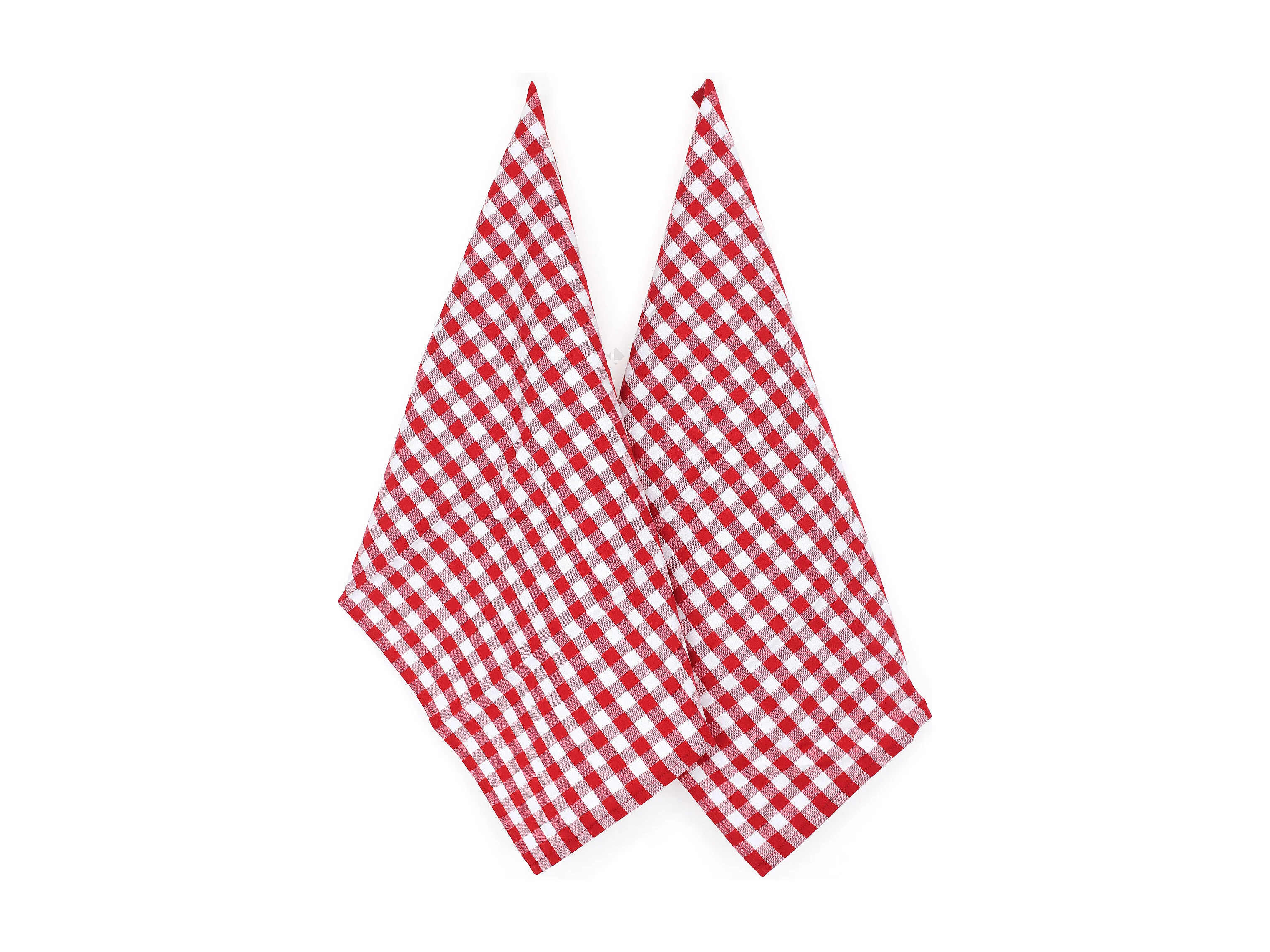 Lot de 2 torchons de cuisine toile 50x70 cm SQUARES VICHY rouge
