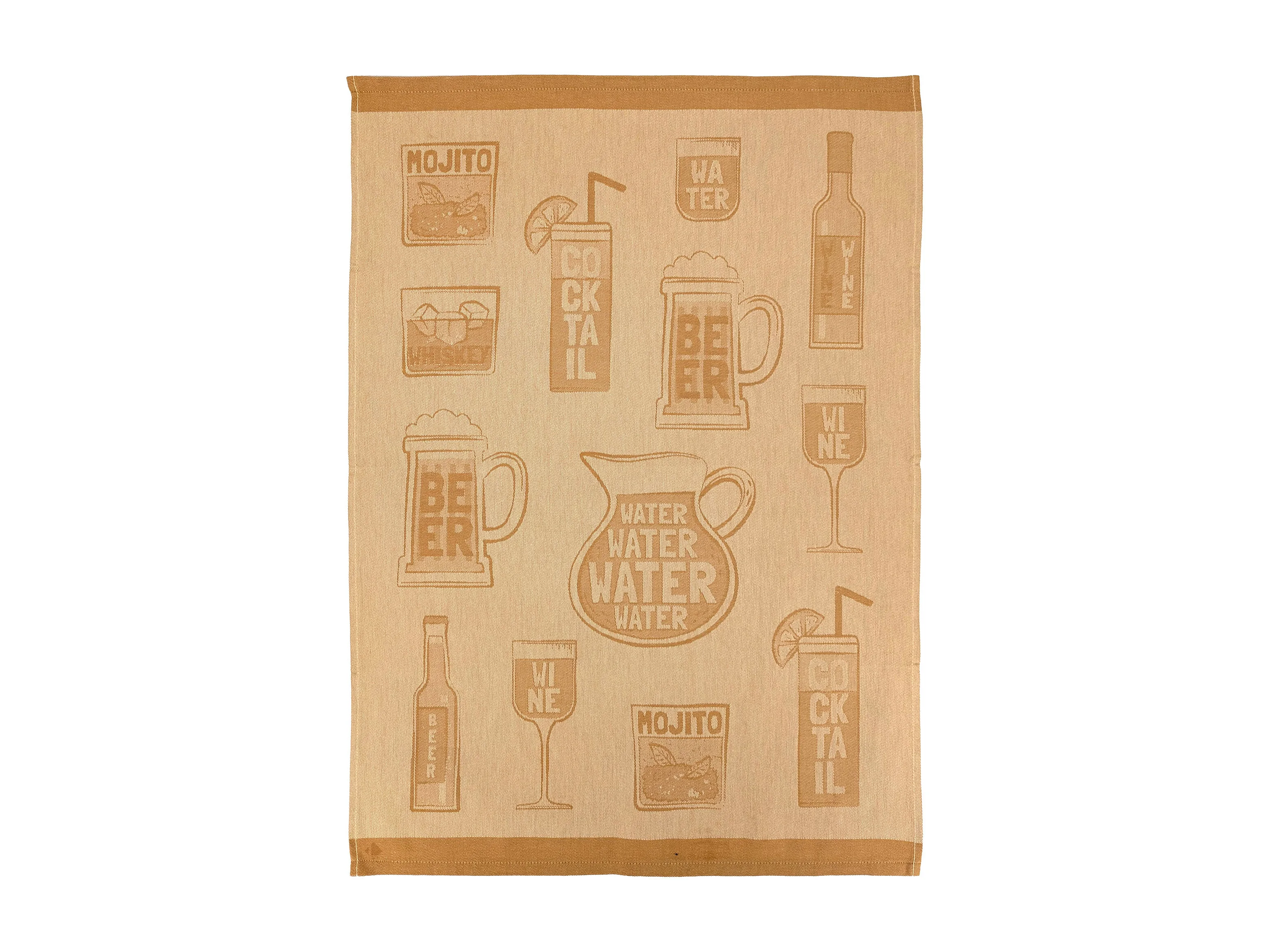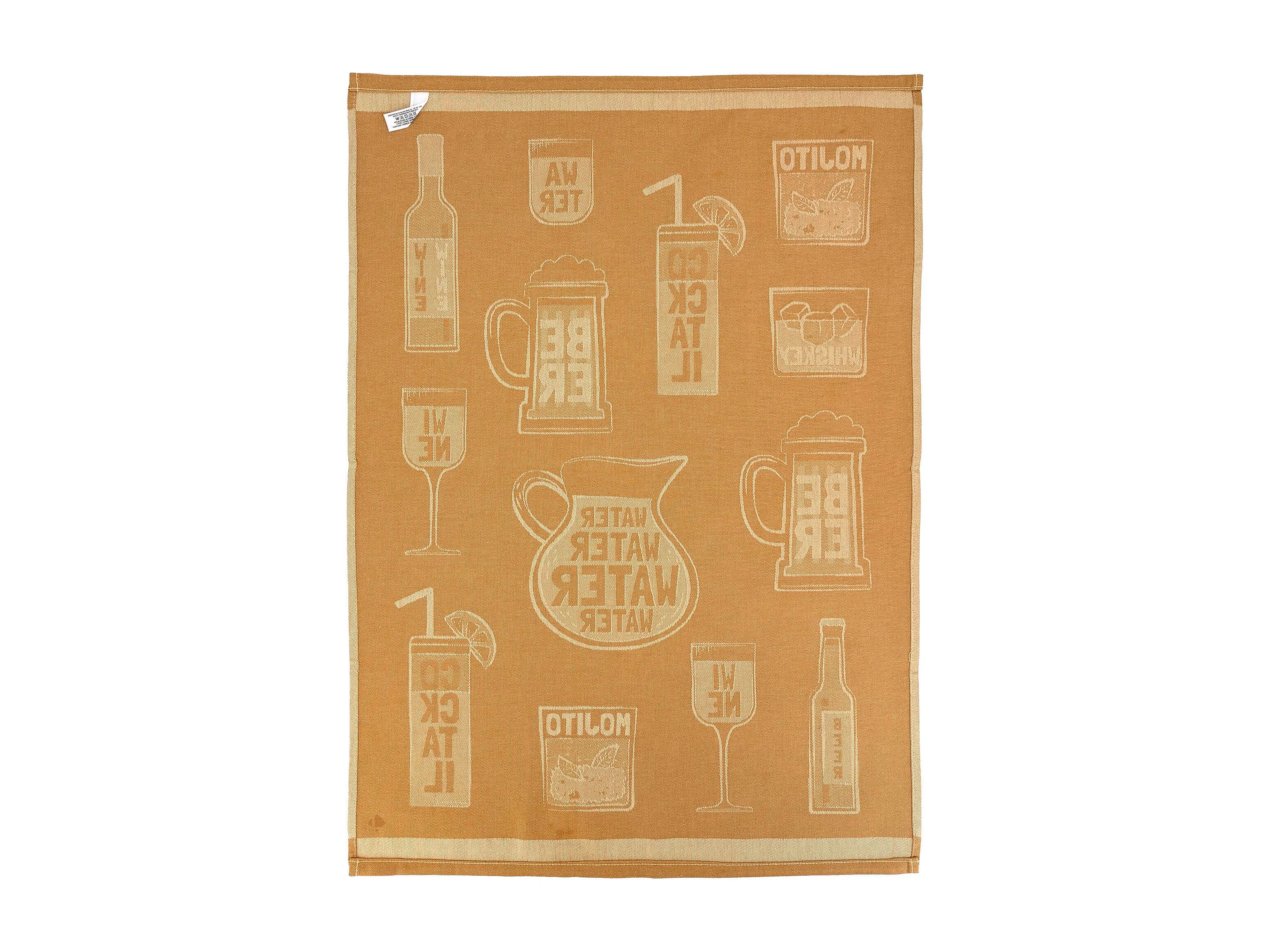 Lot de 2 torchons de cuisine toile DRINK 50x70 cm jaune Moutarde