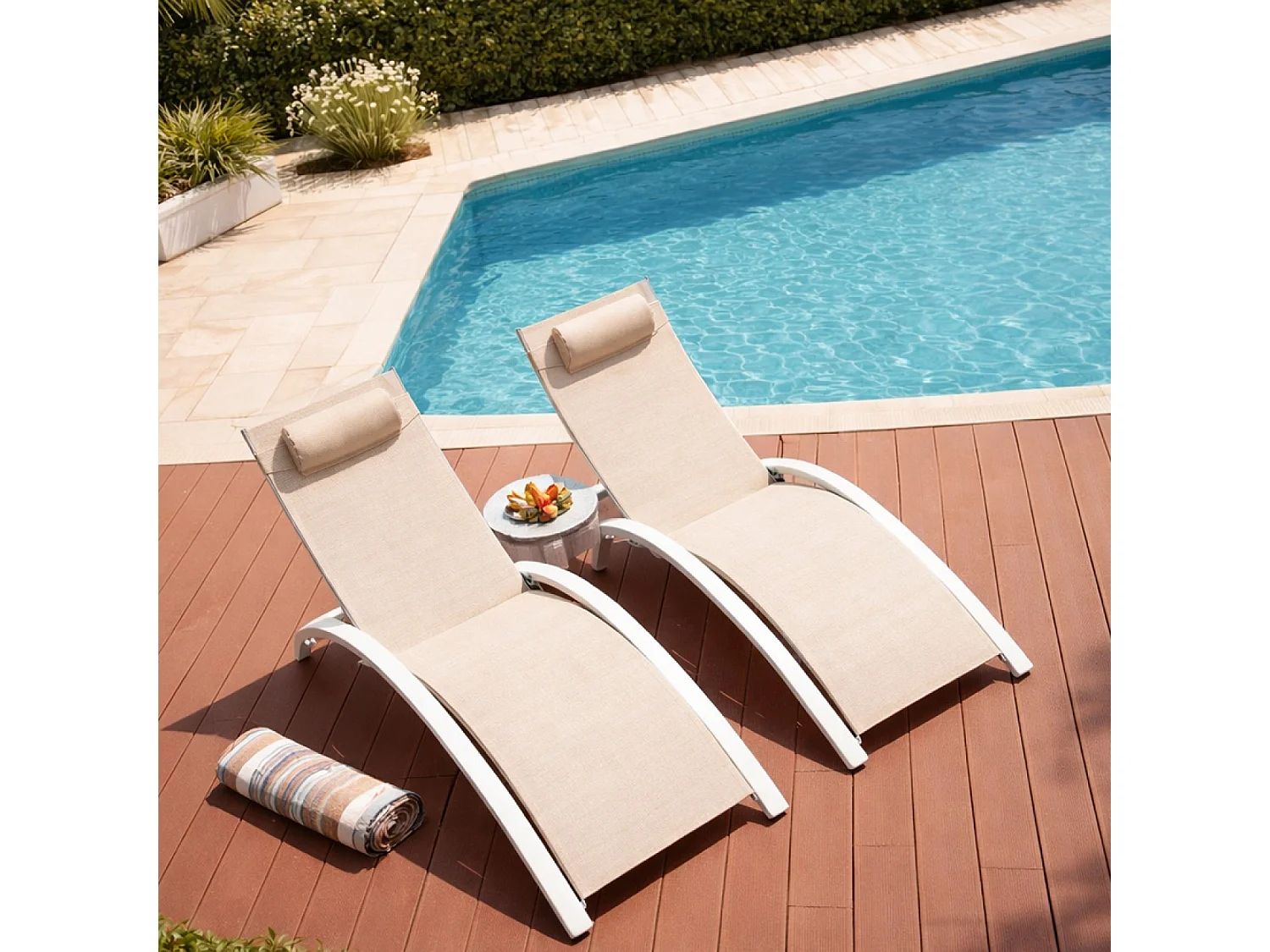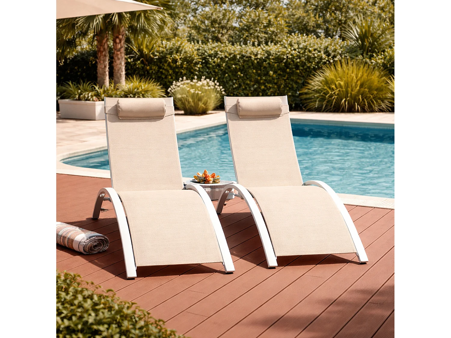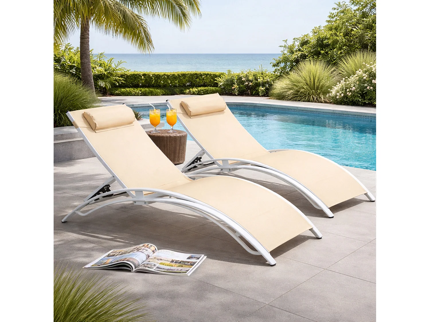 Lot de 2 transats ajustables blanc et écru CALI