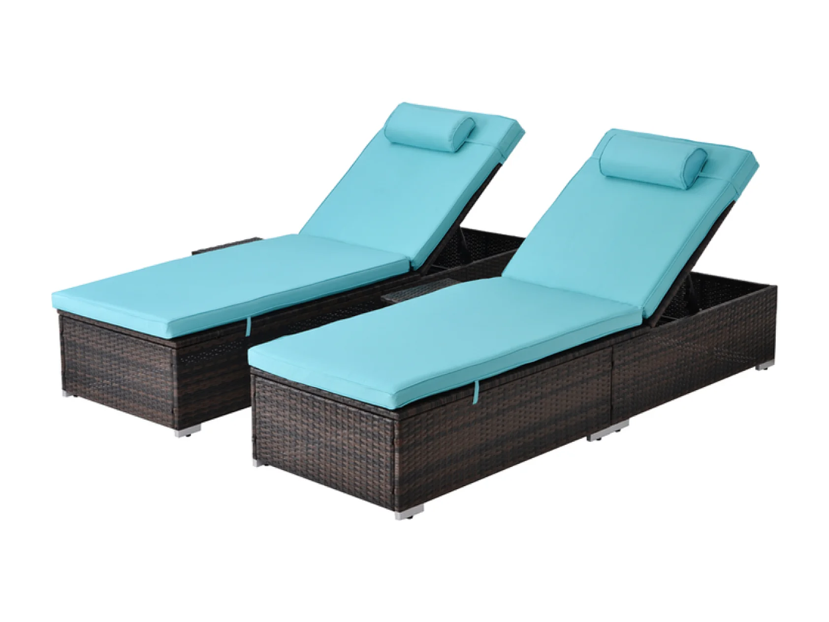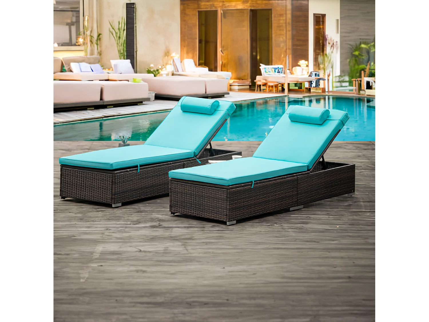 Lot de 2 transats coussins bleus en résine tressée PUNTACANA