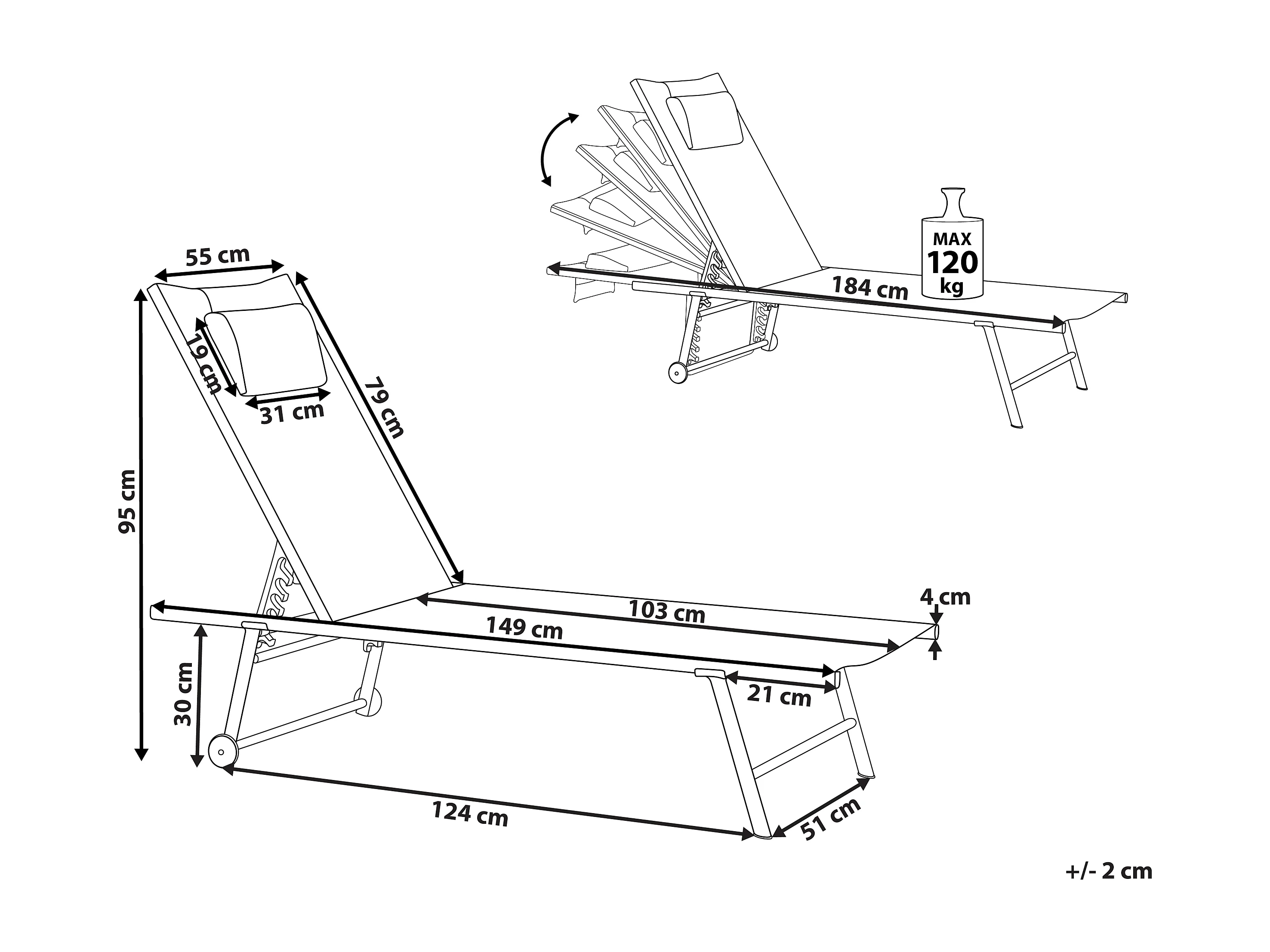 Lot de 2 transats beige. 5 positions. en textilène et métal. FLORA. L155 x P59 x H106cm