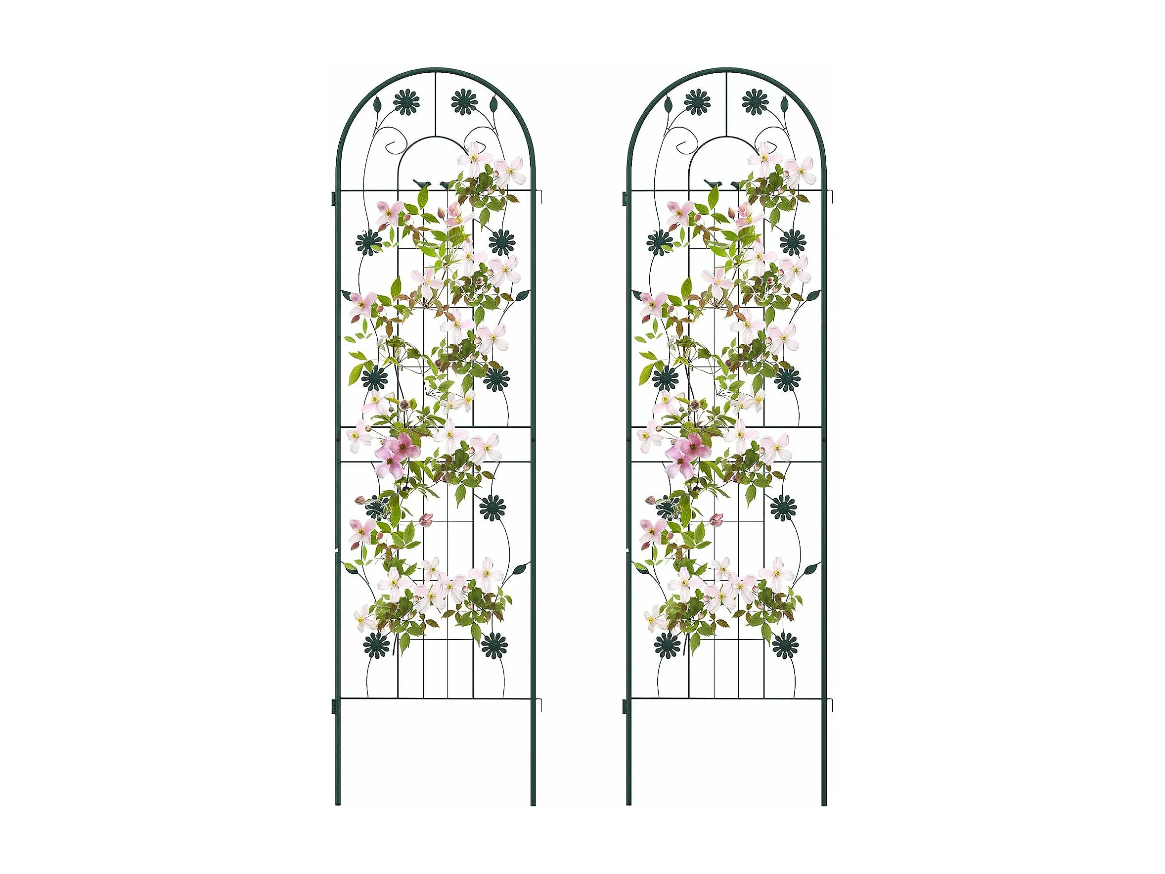 Lot de 2 Treillis de Jardin en Métal 220 x 50 cm, Clôture Décorative pour Plante Grimpante, Grille Fleurs Antirouille pour Jardin, Cour, Patio (Vert)