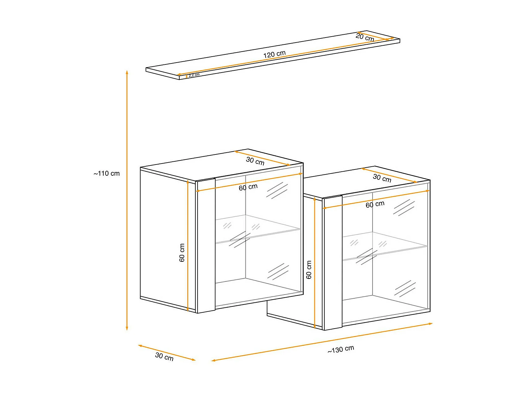 Lot de 2 Vitrines Murales & Étagère "Switch SBIII" 130cm Blanc