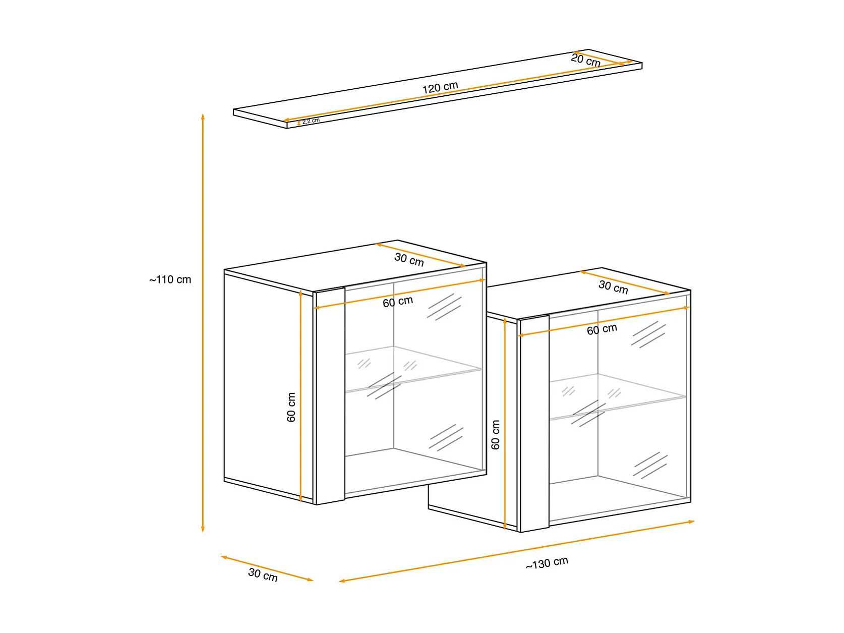 Lot de 2 Vitrines Murales & Étagère "Switch SBIII" 130cm Blanc & Noir