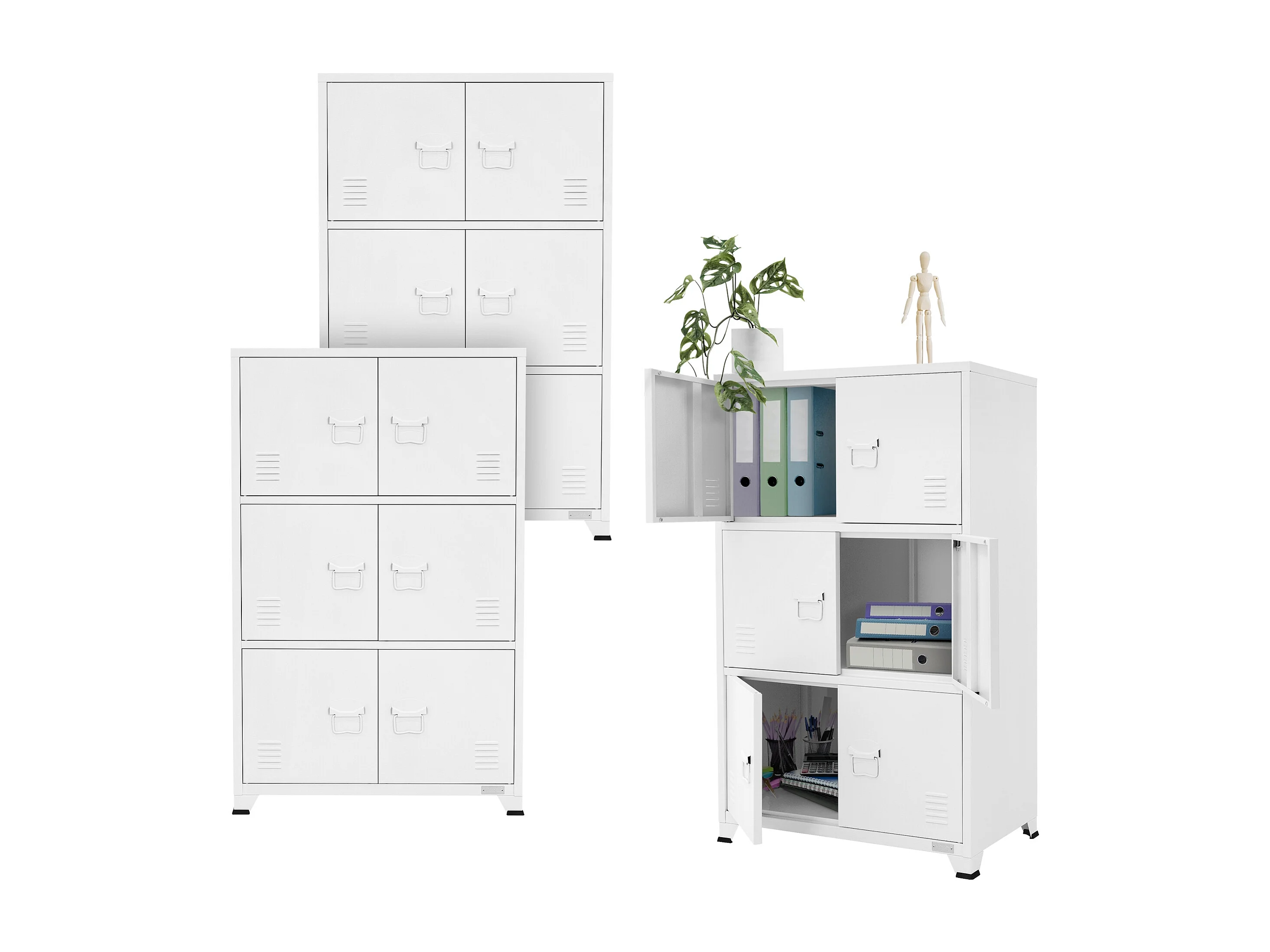 Lot de 3 armoires de bureau Armoire de classement Armoire en acier avec étagères