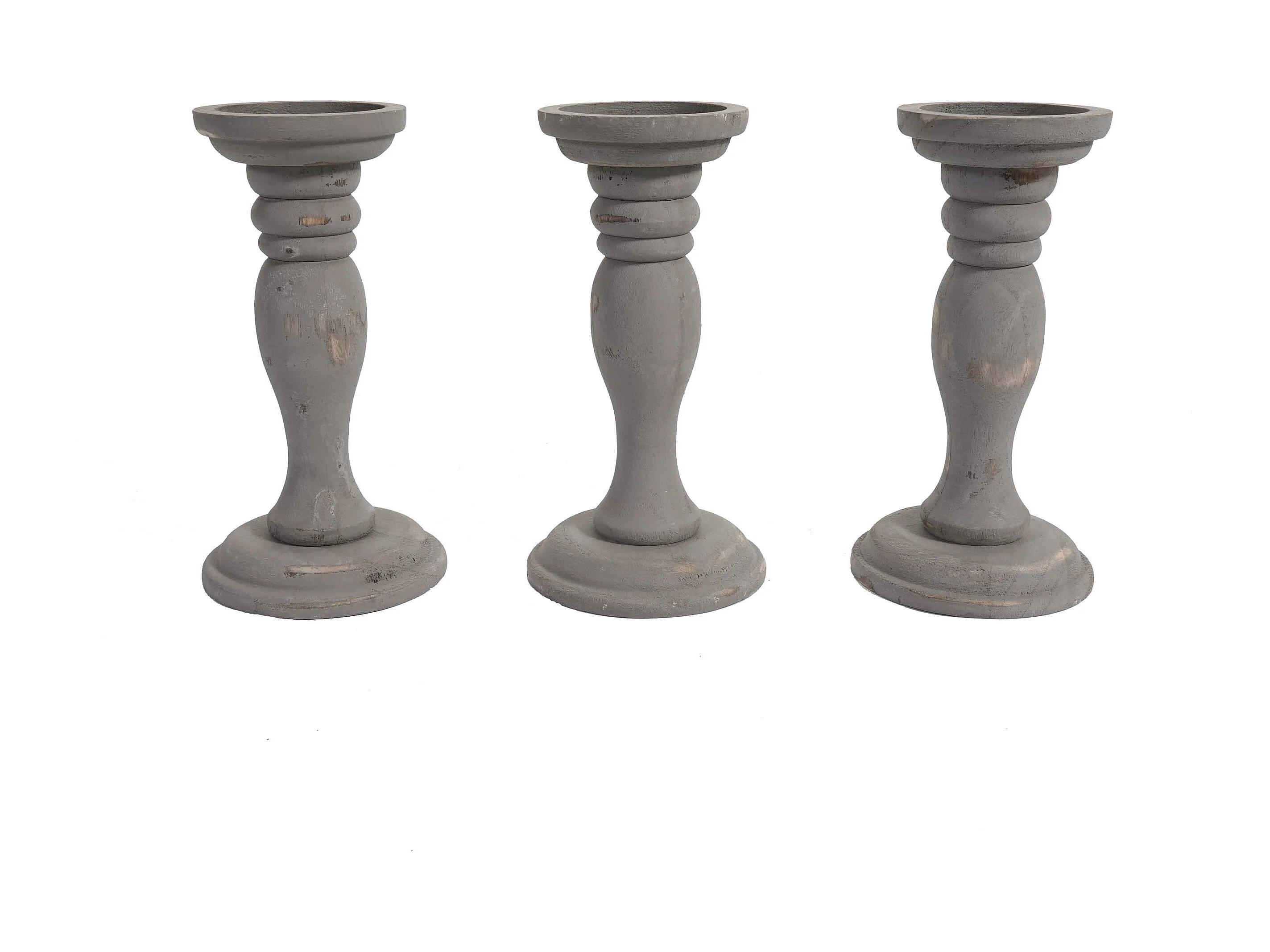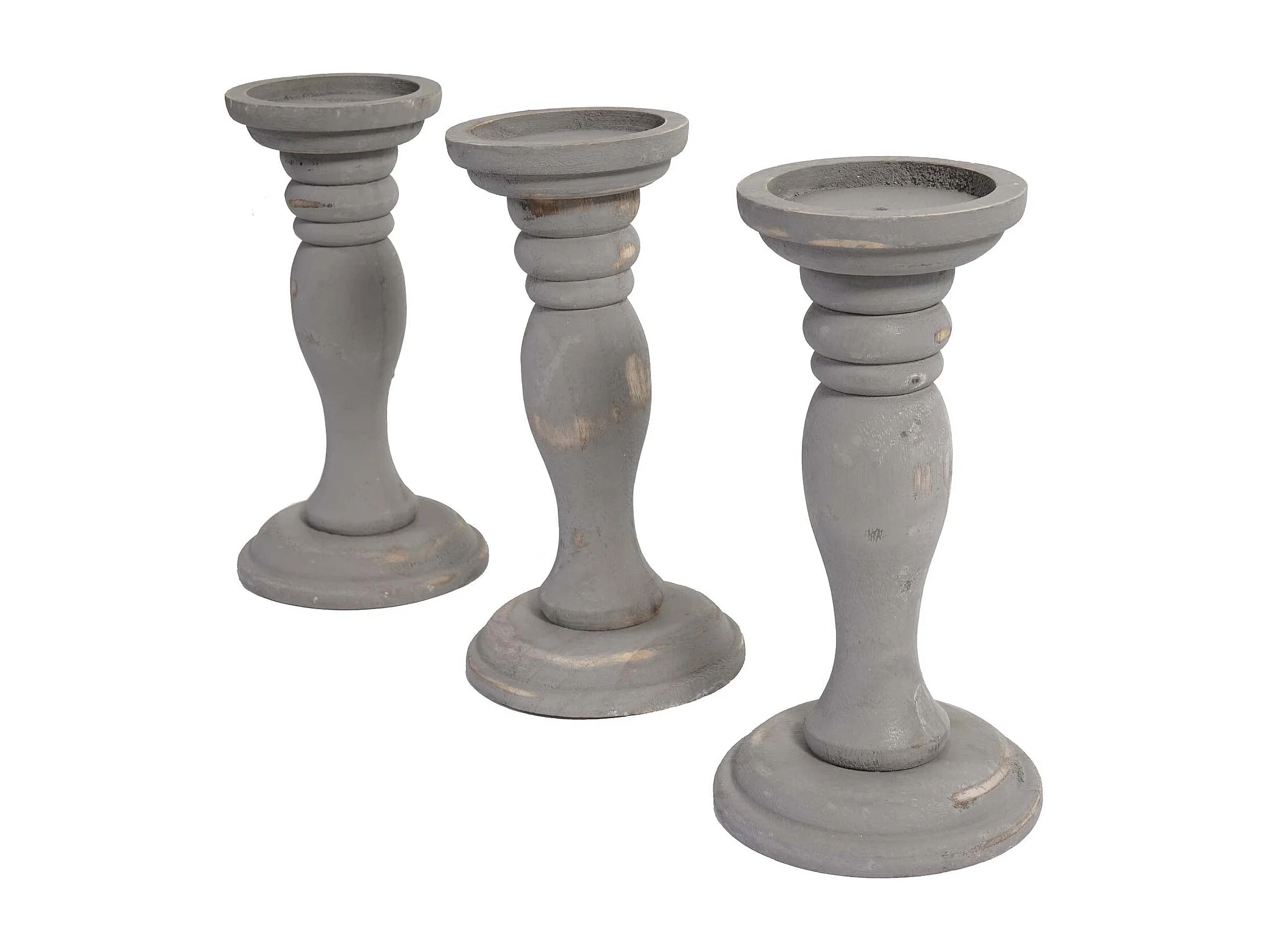 Bougeoir H. 31 cm en bois de manguier et gris laqué - LUXORIA 2899