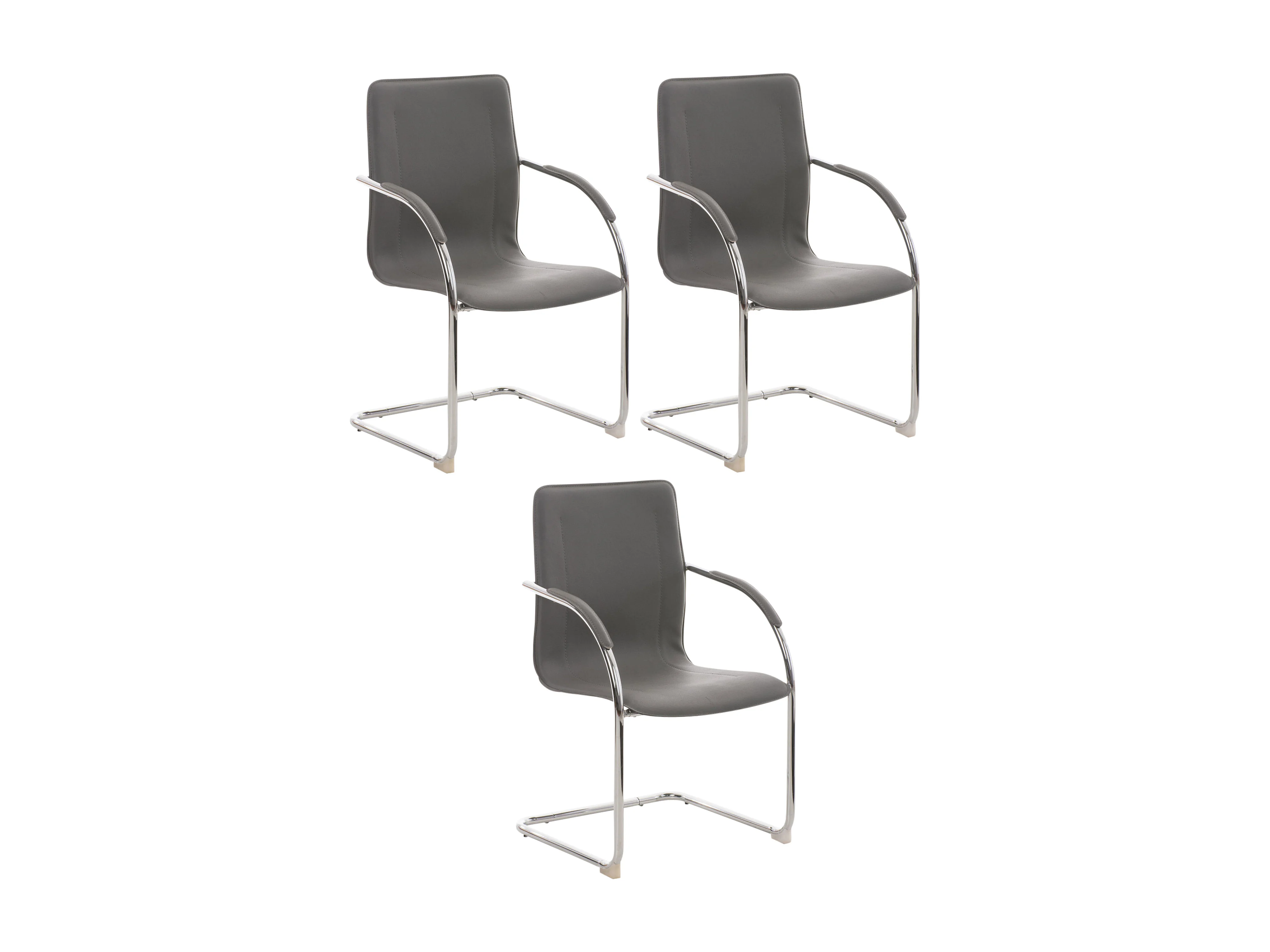 Lot de 3 chaises oscillantes - Similicuir & Nature - Gris - Melina