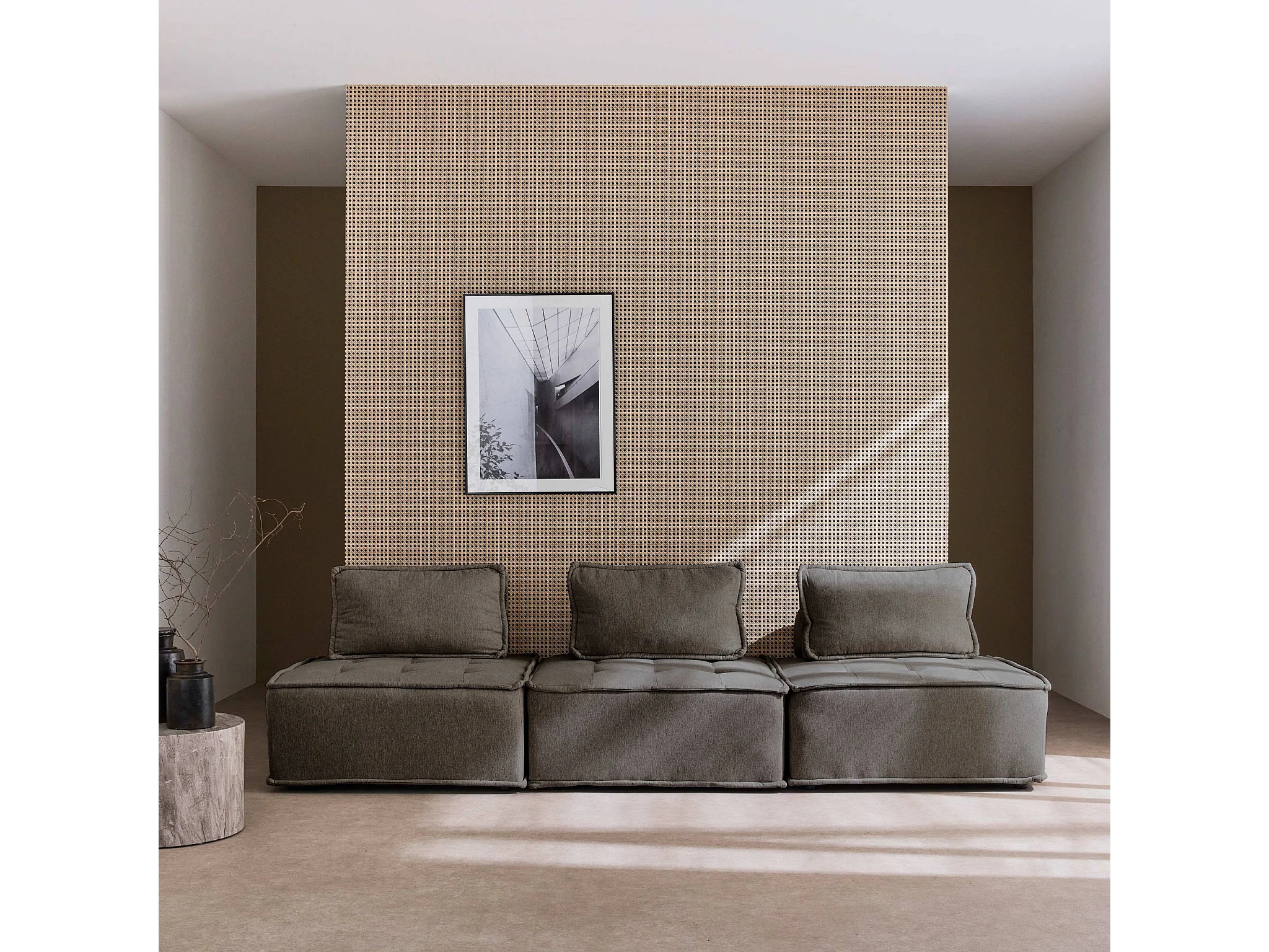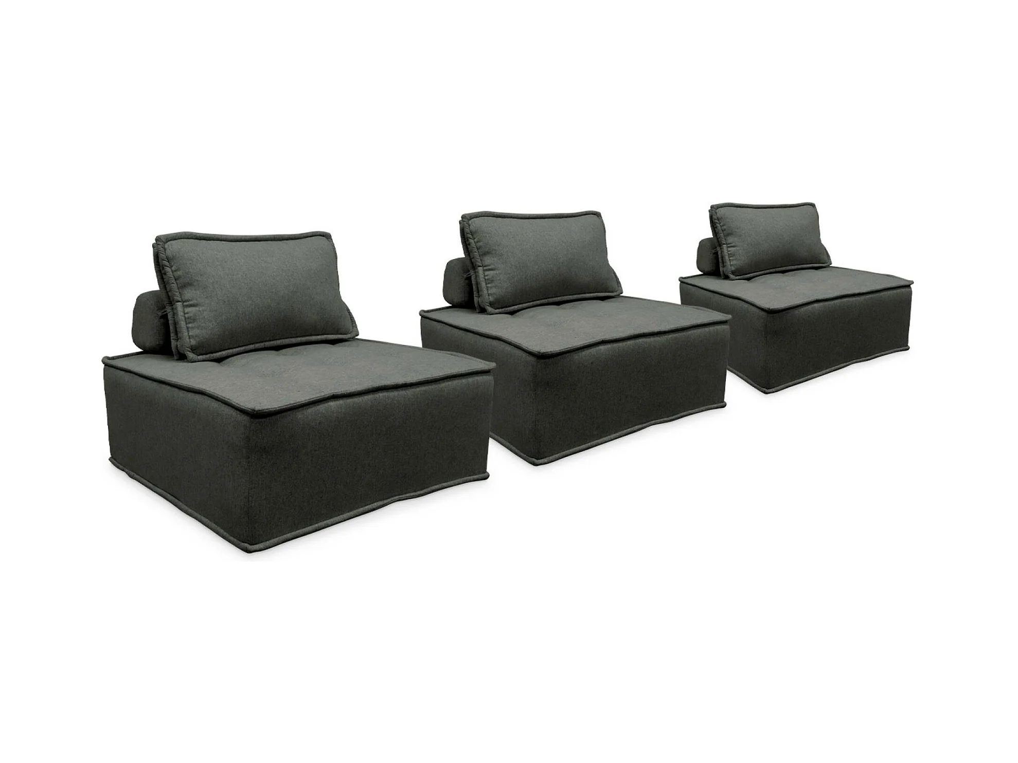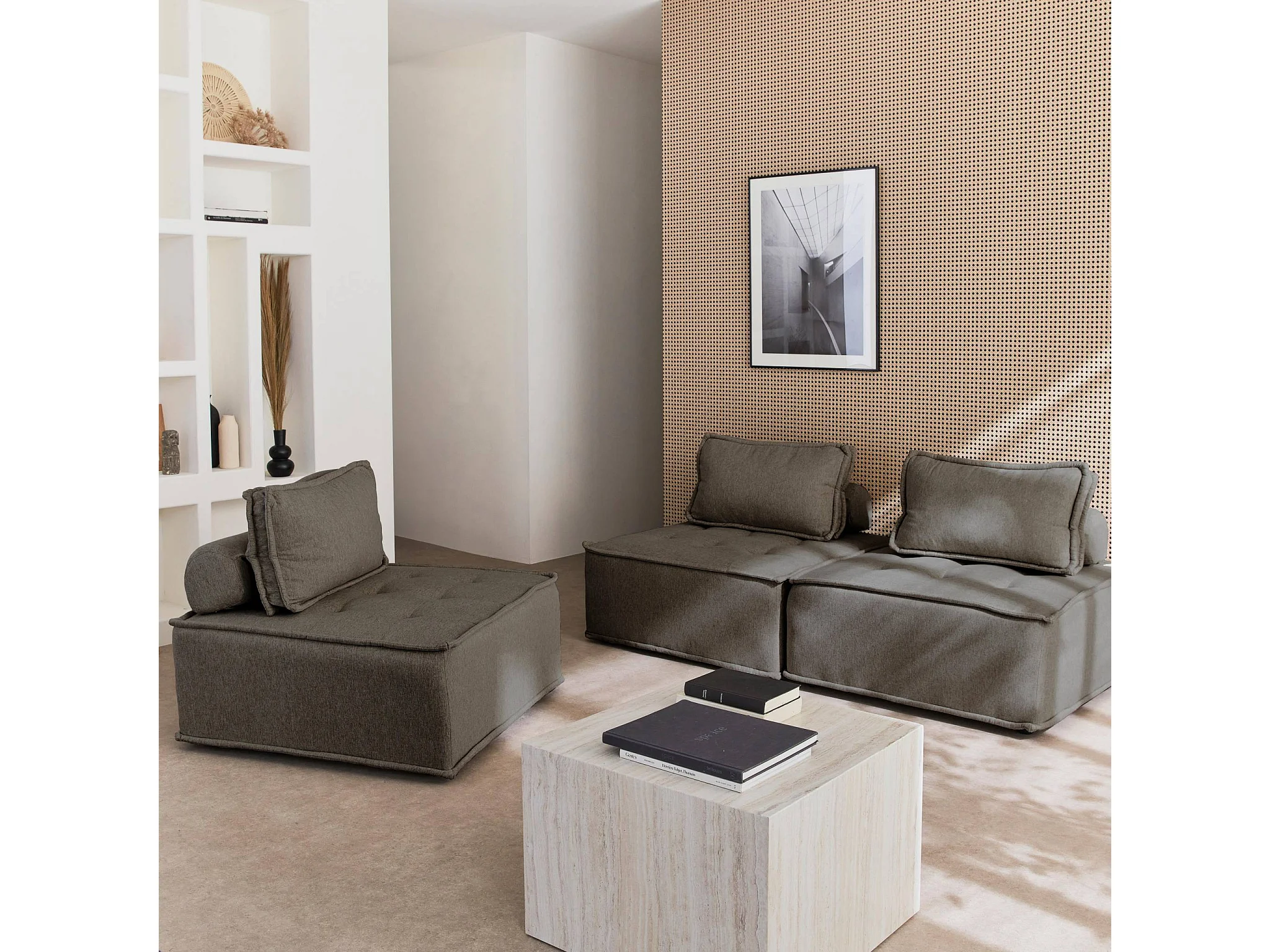 Lot de 3 chauffeuses pour canapé modulables tissu capitonné gris avec 1 coussin