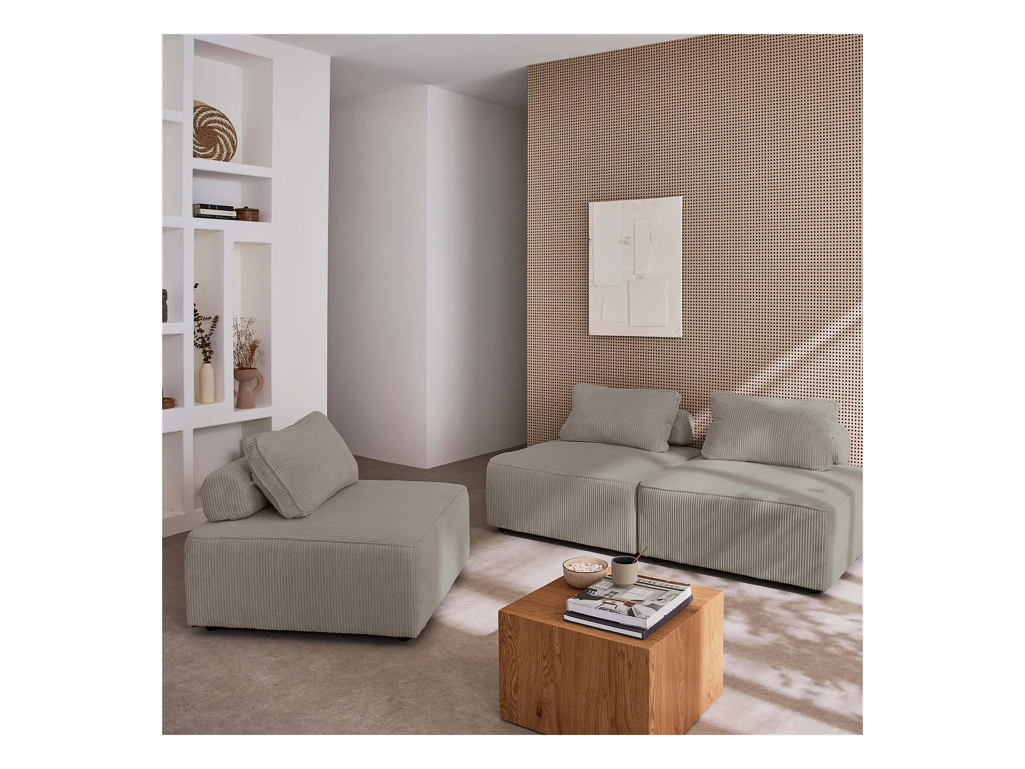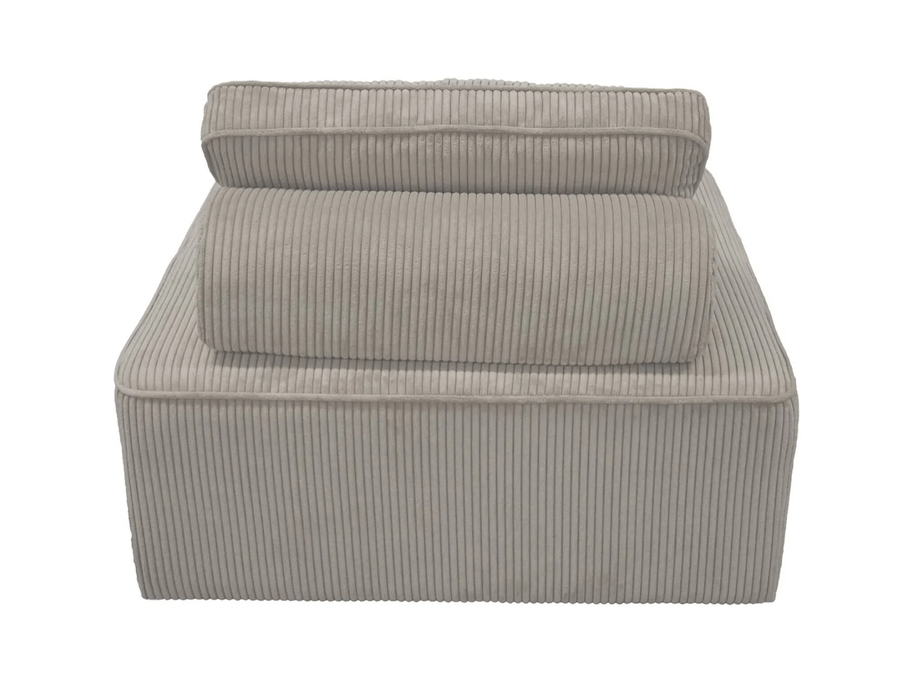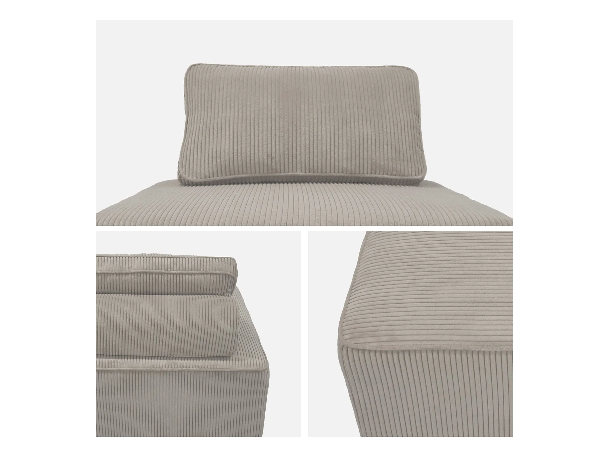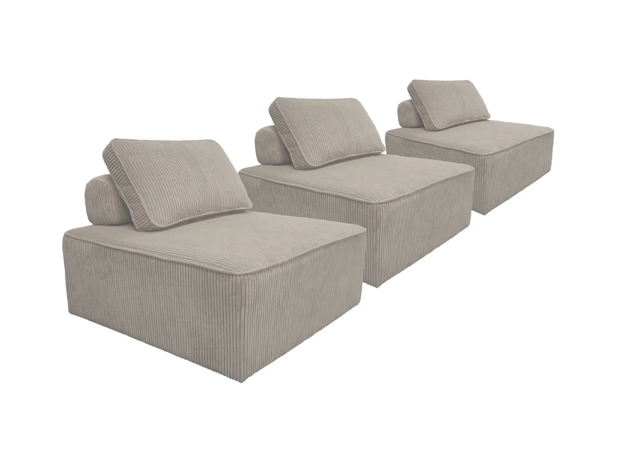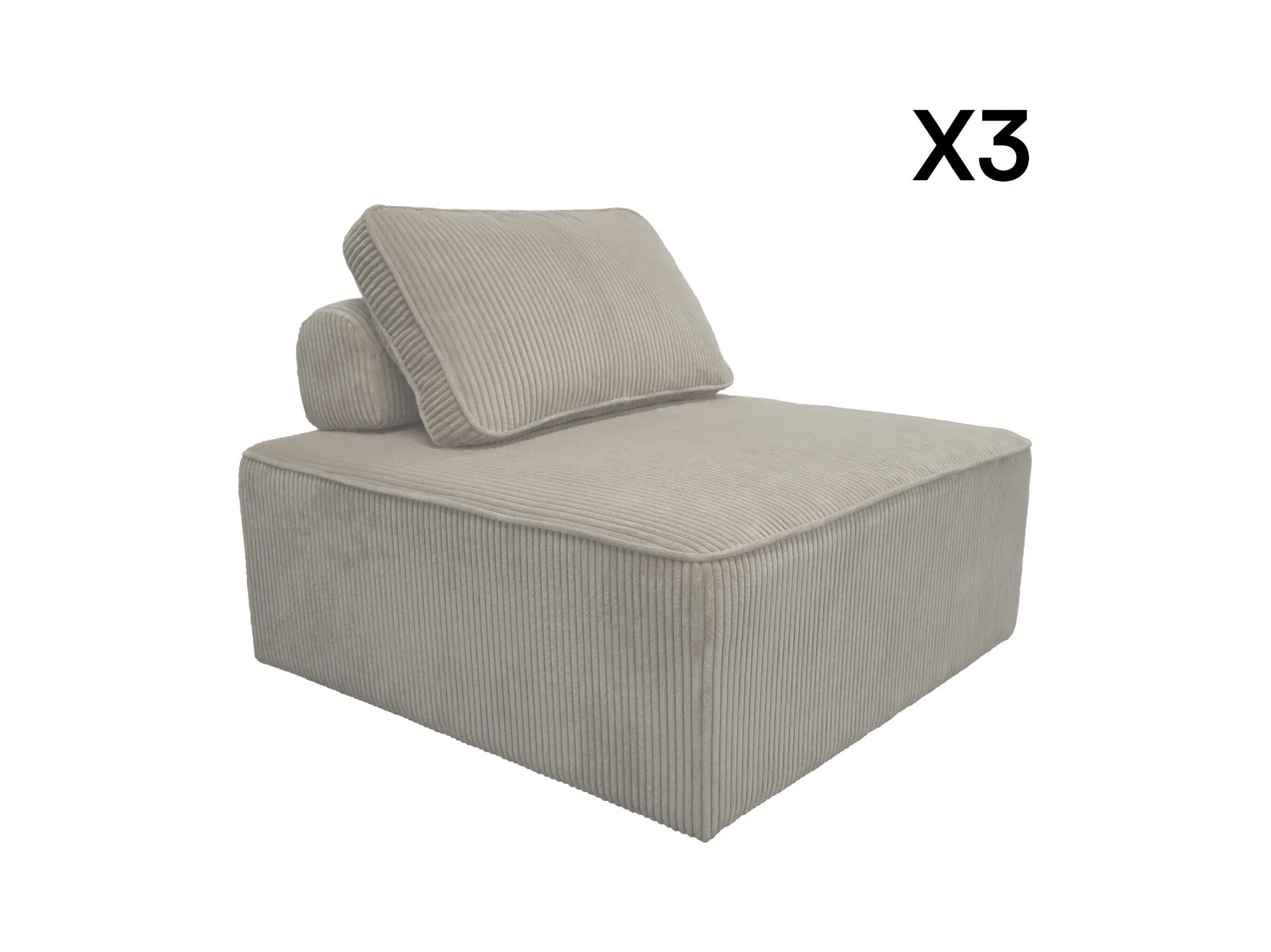 Lot de 3 chauffeuses pour canapé modulables velours côtelé gris clair avec un coussin
