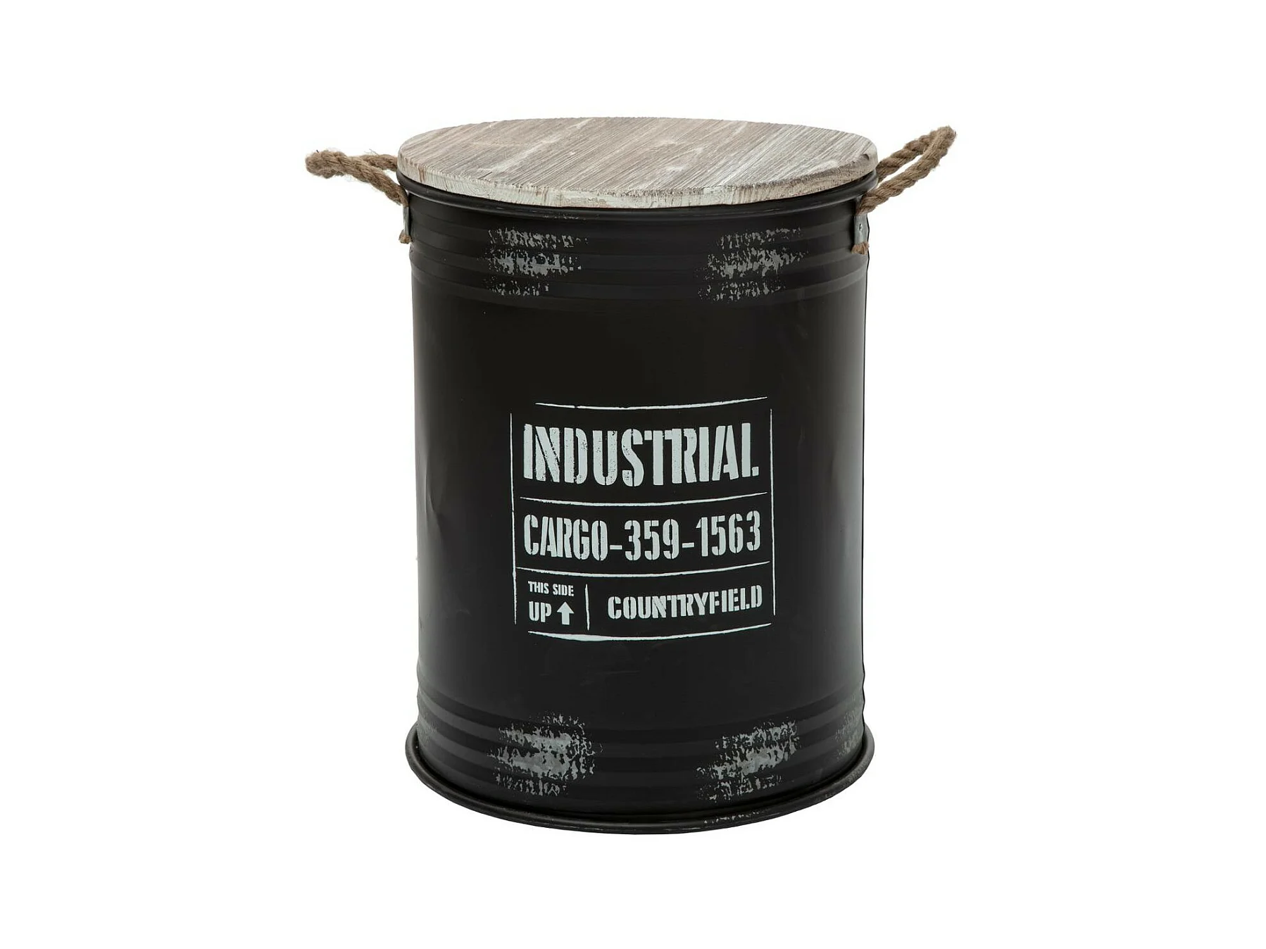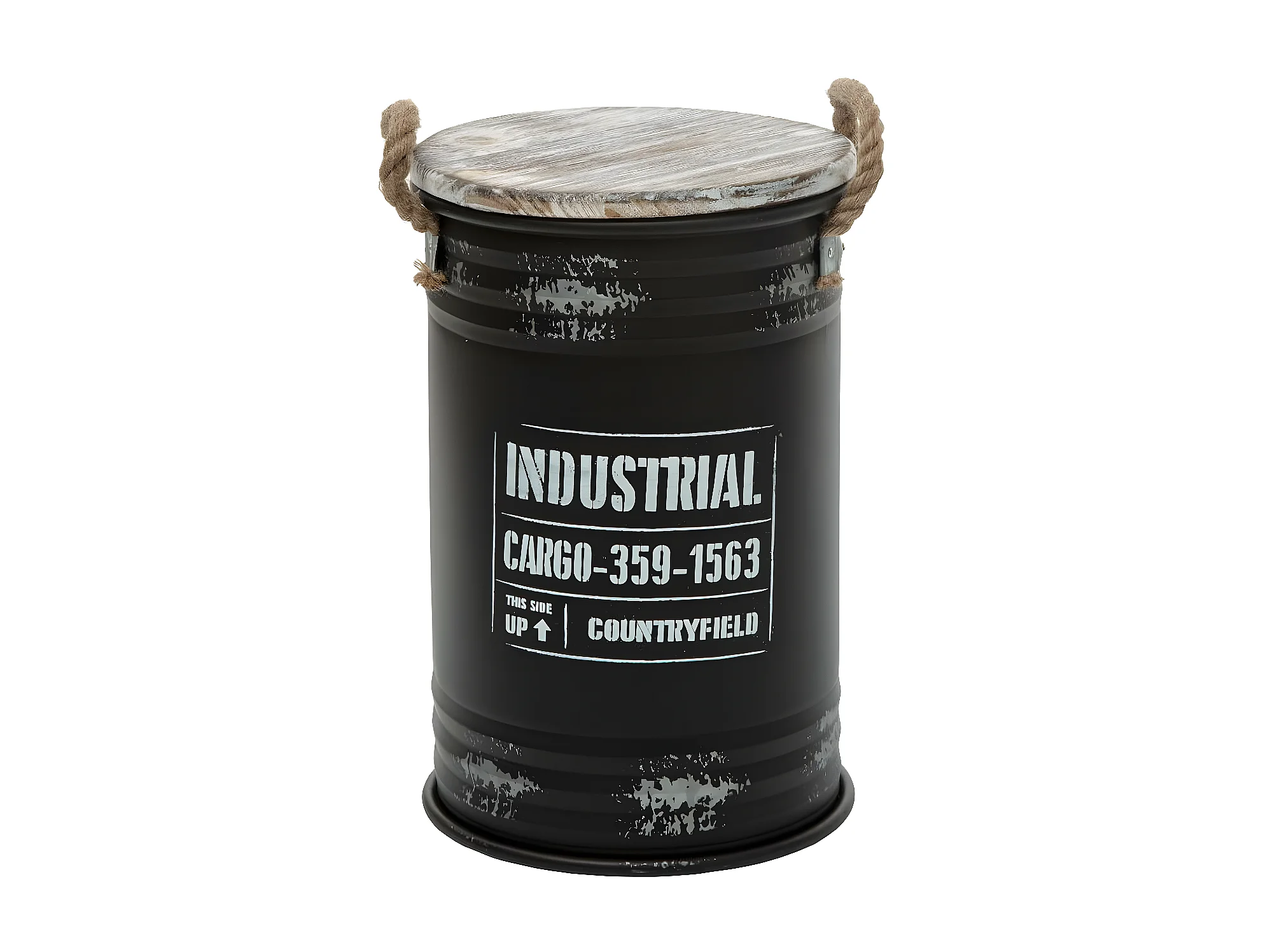 Lot de 3 Coffres Bidon en métal Noir Industrial rétro factory
