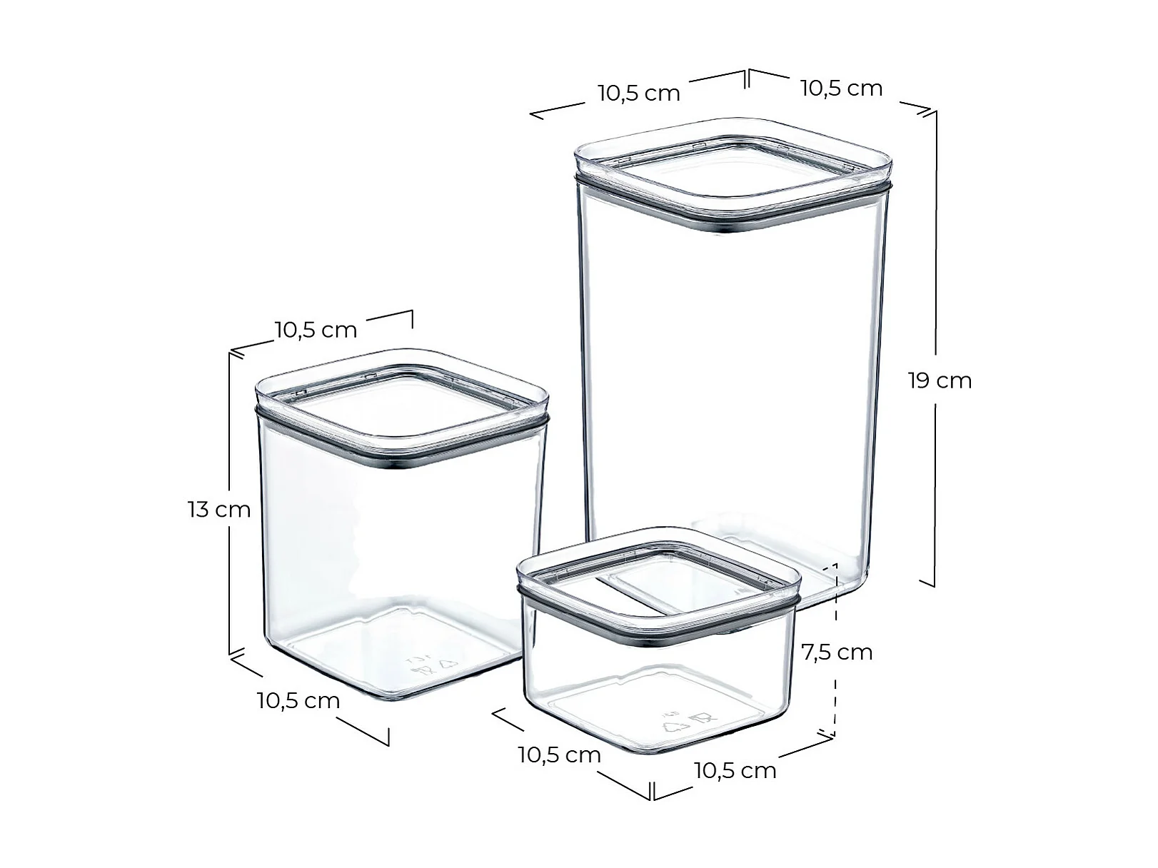 Lot de 3 contenants alimentaires hermétiques petit, moyen et grand, forme carrée 7house