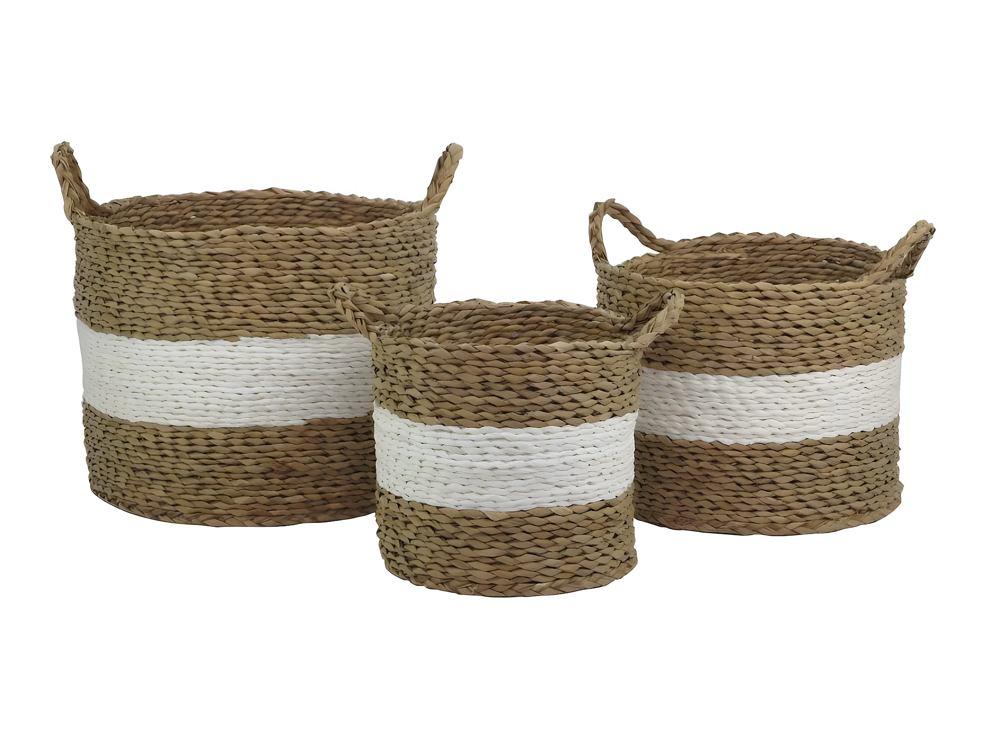 Lot 3 panières blanc et marron fibre naturelle avec anses - CORDOU