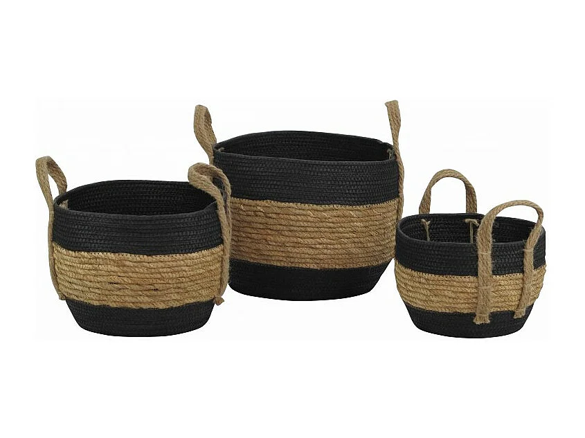 Corbeilles en palmier teinté noir (Lot de 3)