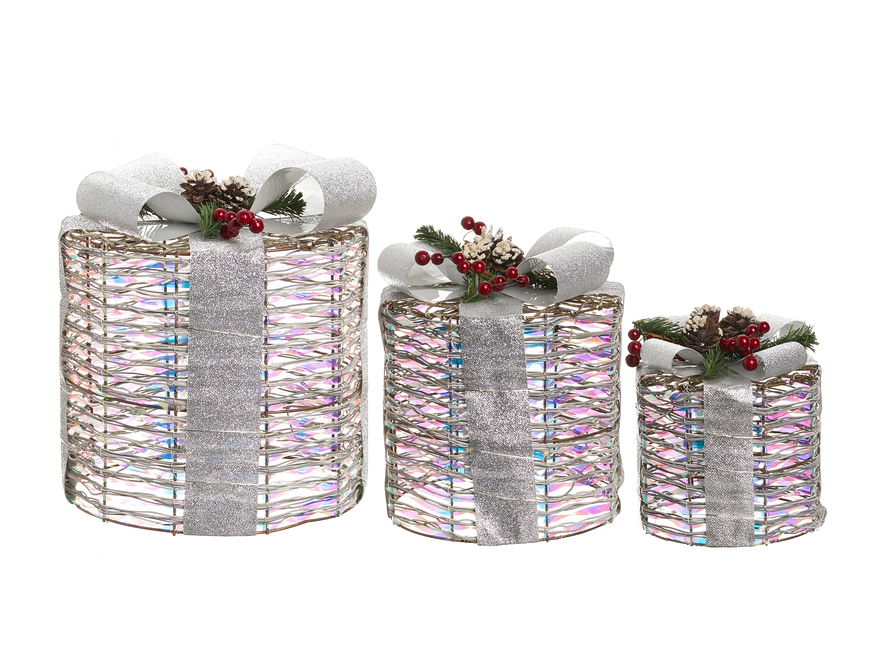 Lot de 3 décorations de Noël LED JULSO Cadeaux de Noël 20/25/30 cm Argenté