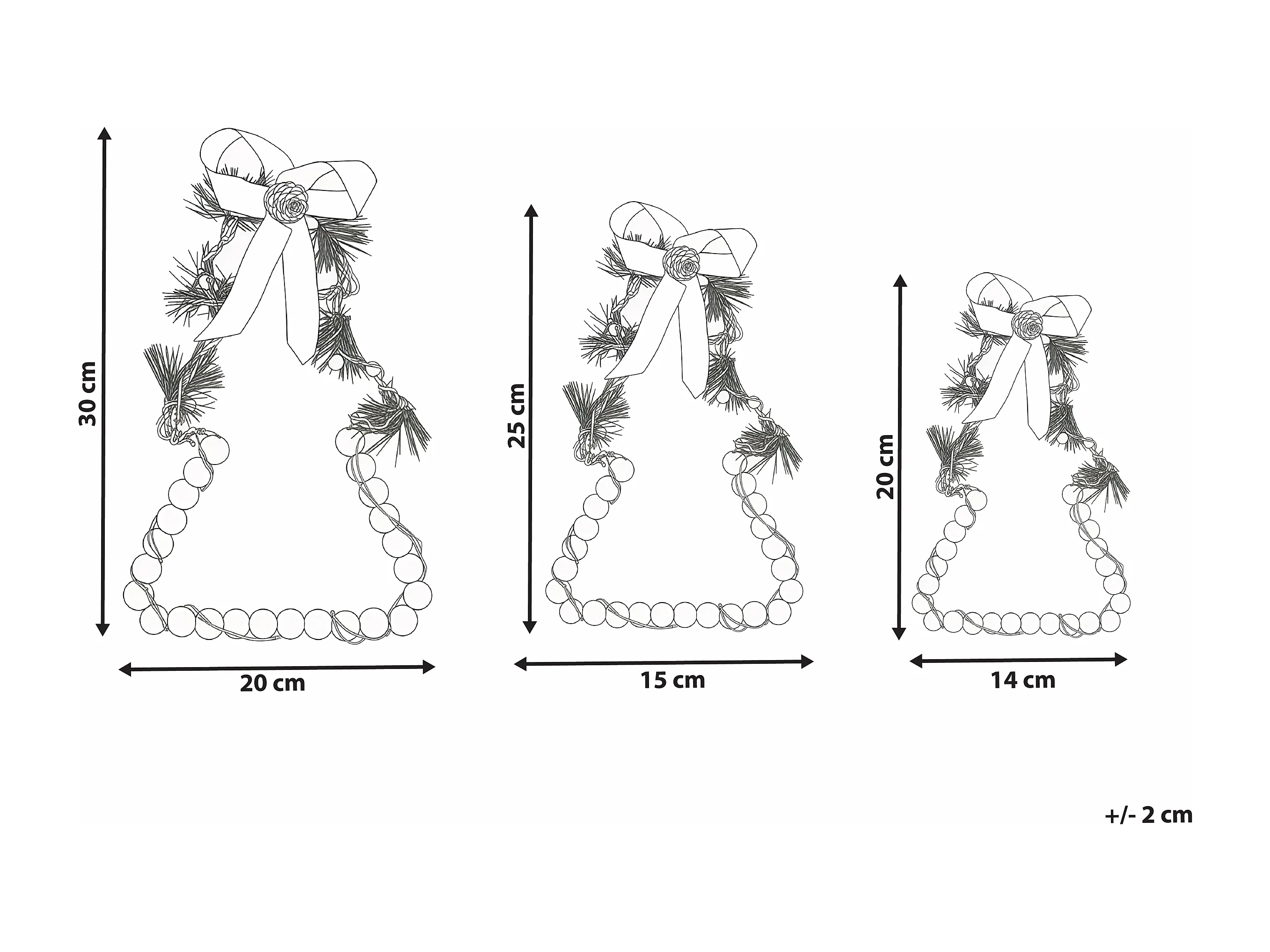 Lot de 3 décorations suspendues LED KEITELE Couronne 25/30/35 cm Blanc