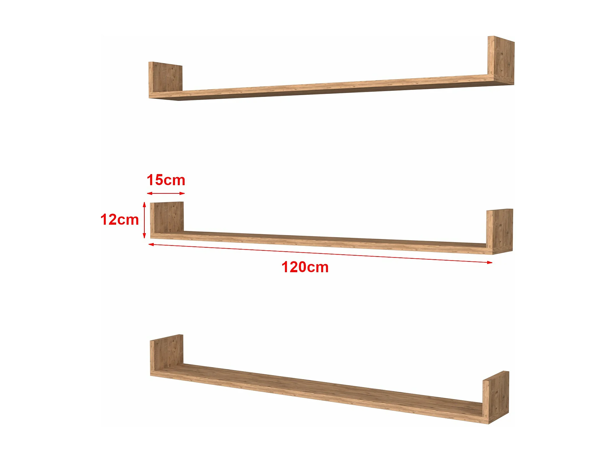 Lot de 3 étagères beige 120 x 15 x 12 cm 03_0007077
