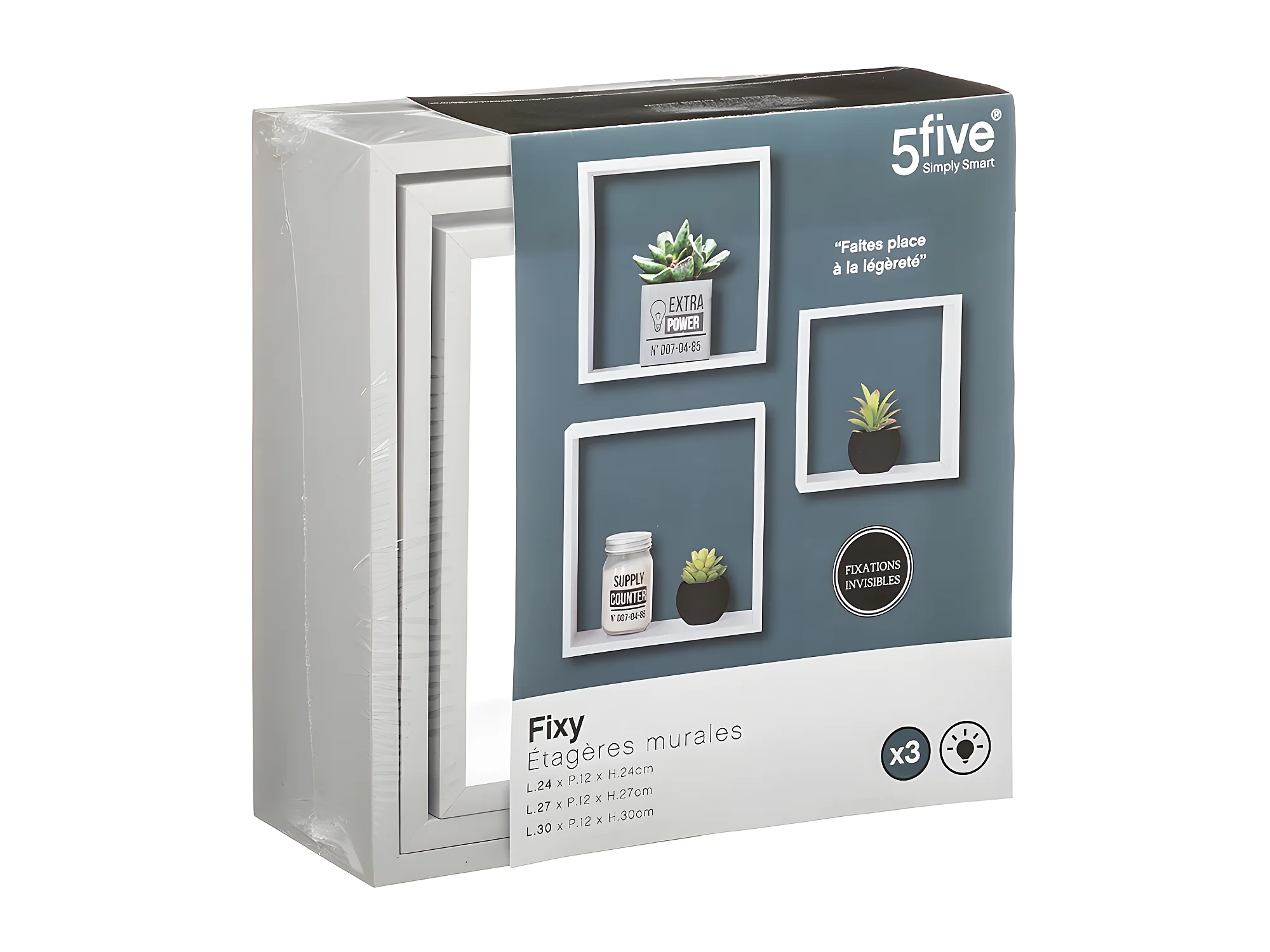 Lot de 3 Étagères murales flottantes Cubes coloris Blanc Fixations invisibles