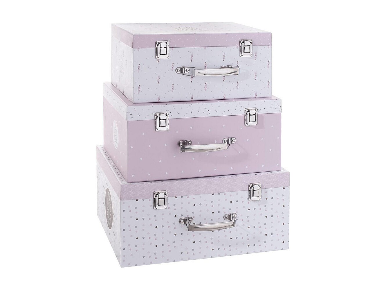 Set de 3 Boîtes de Rangement "Malle" 36cm Rose