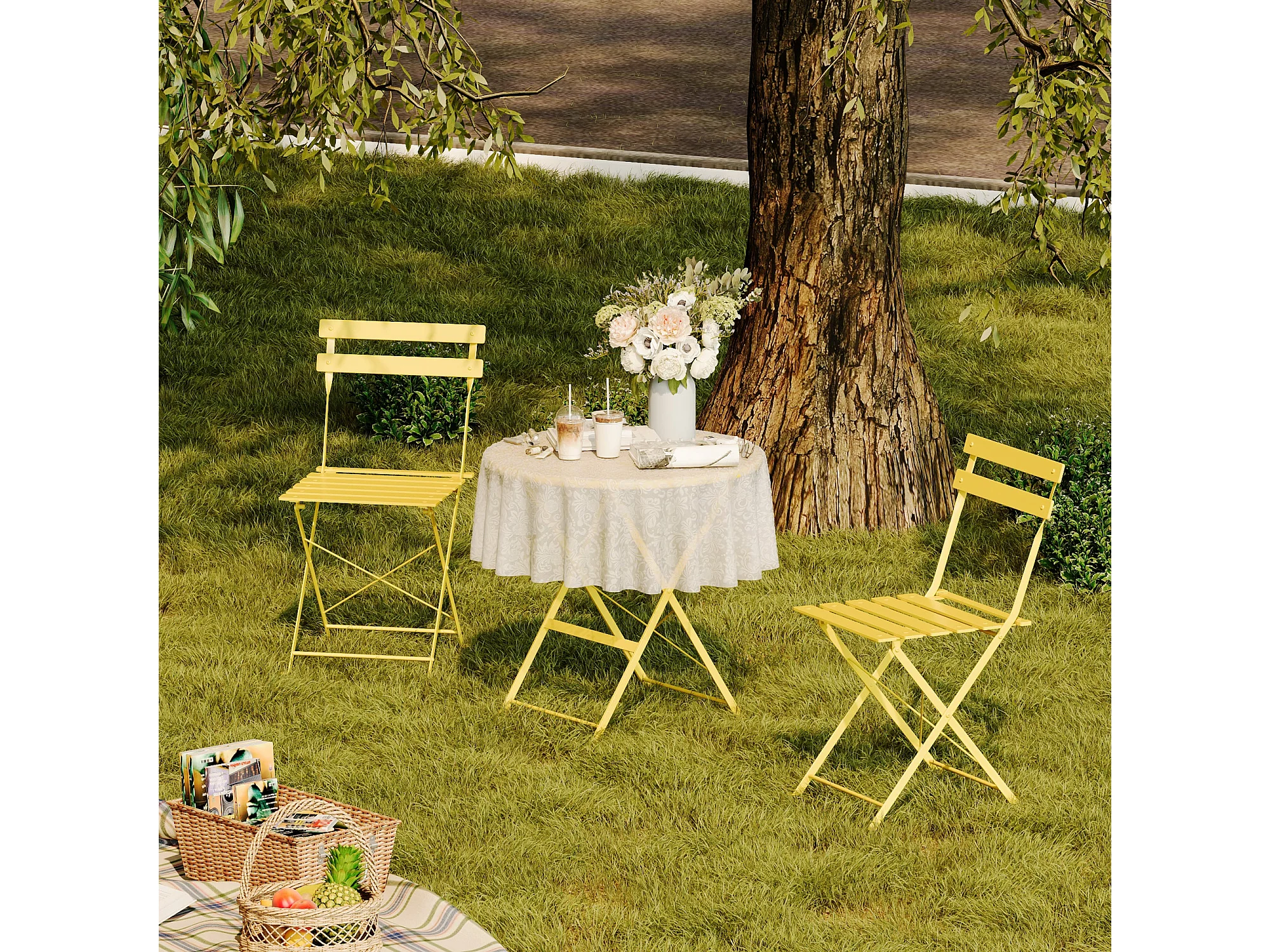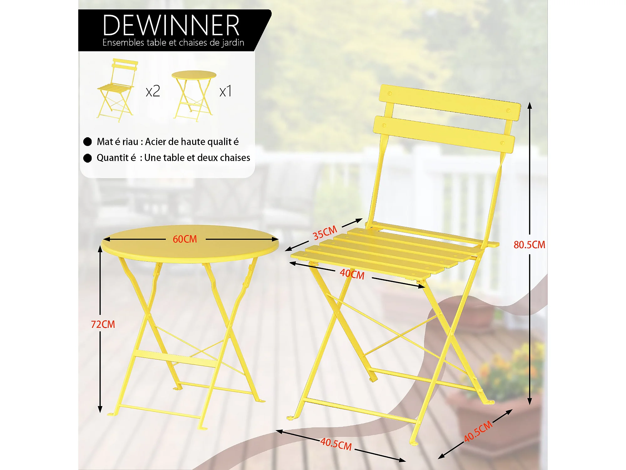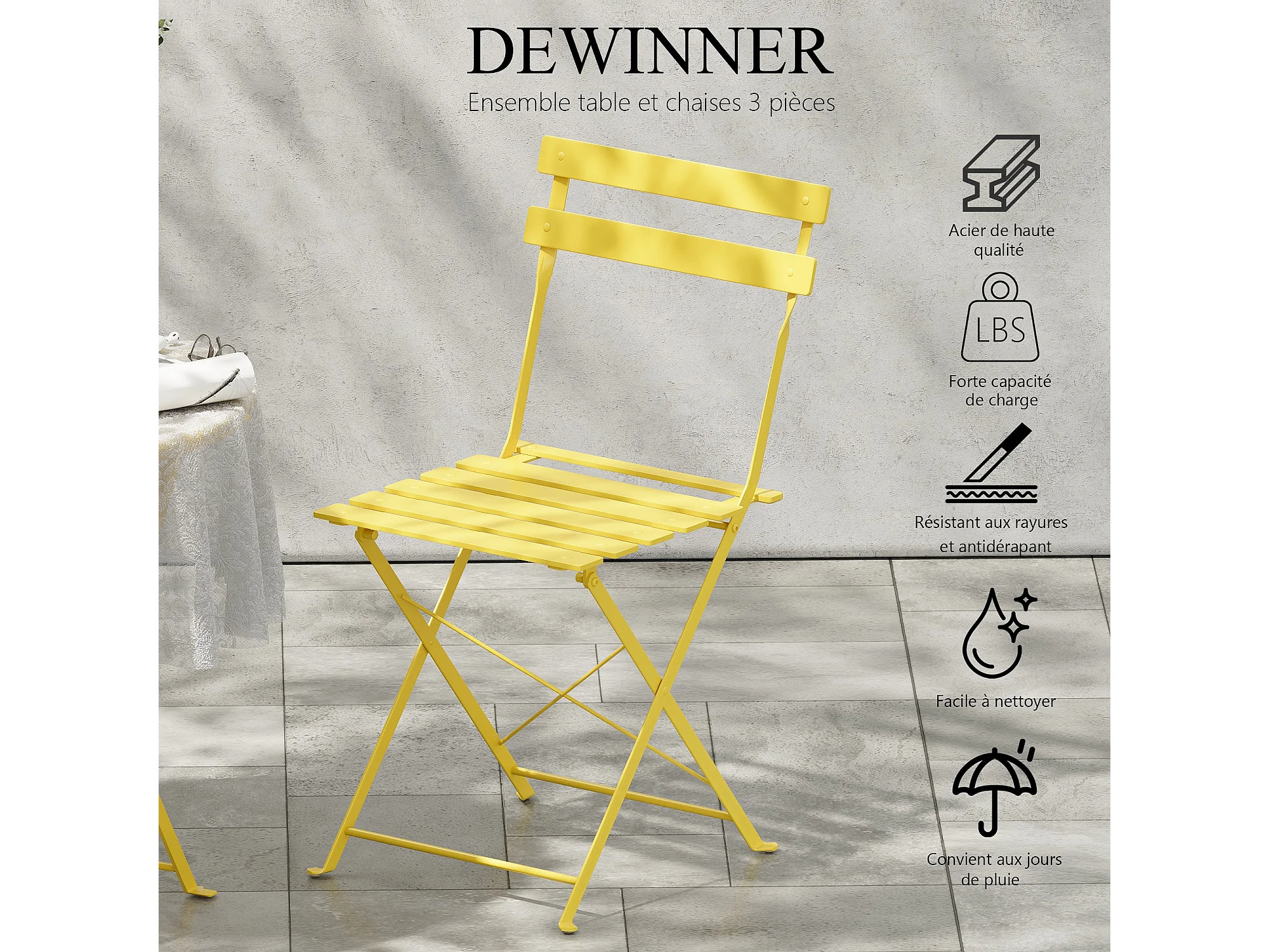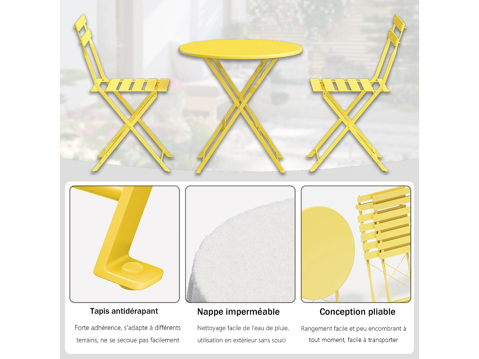 Service de bistrot avec table et 2 chaises en acier jaune ocre - YVONNE