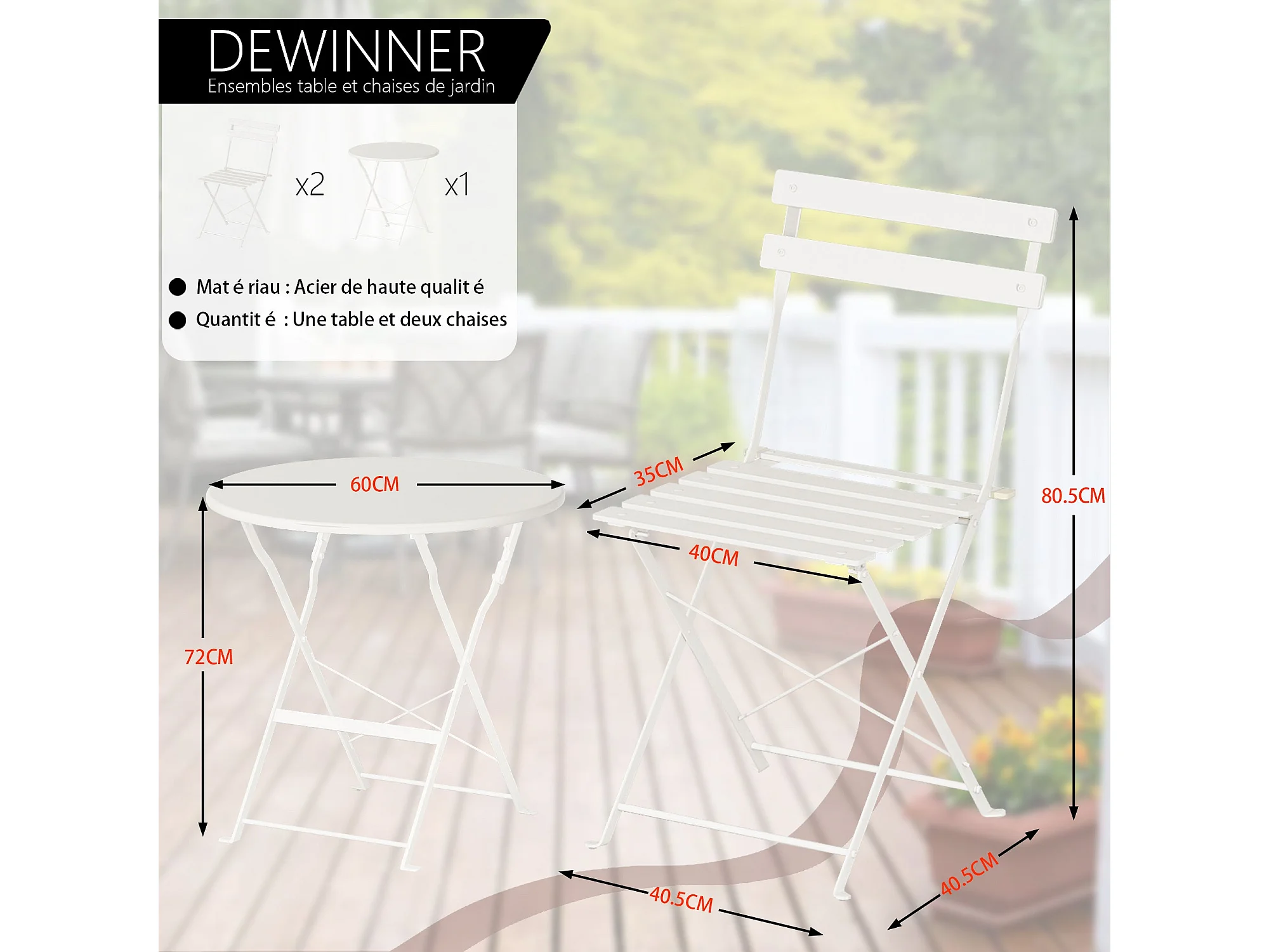 Ensemble de bistro pliable 3 pcs Plastique Blanc GFDF86244