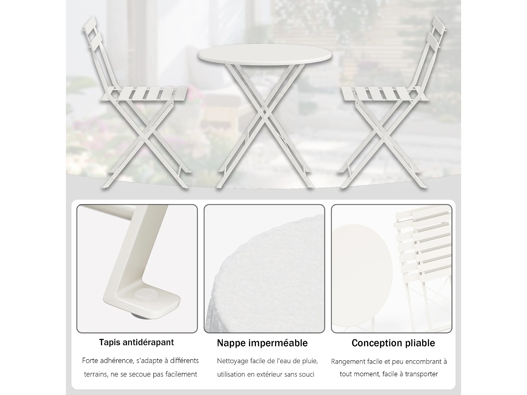 Ensemble de bistro pliable 3 pièces Plastique Blanc