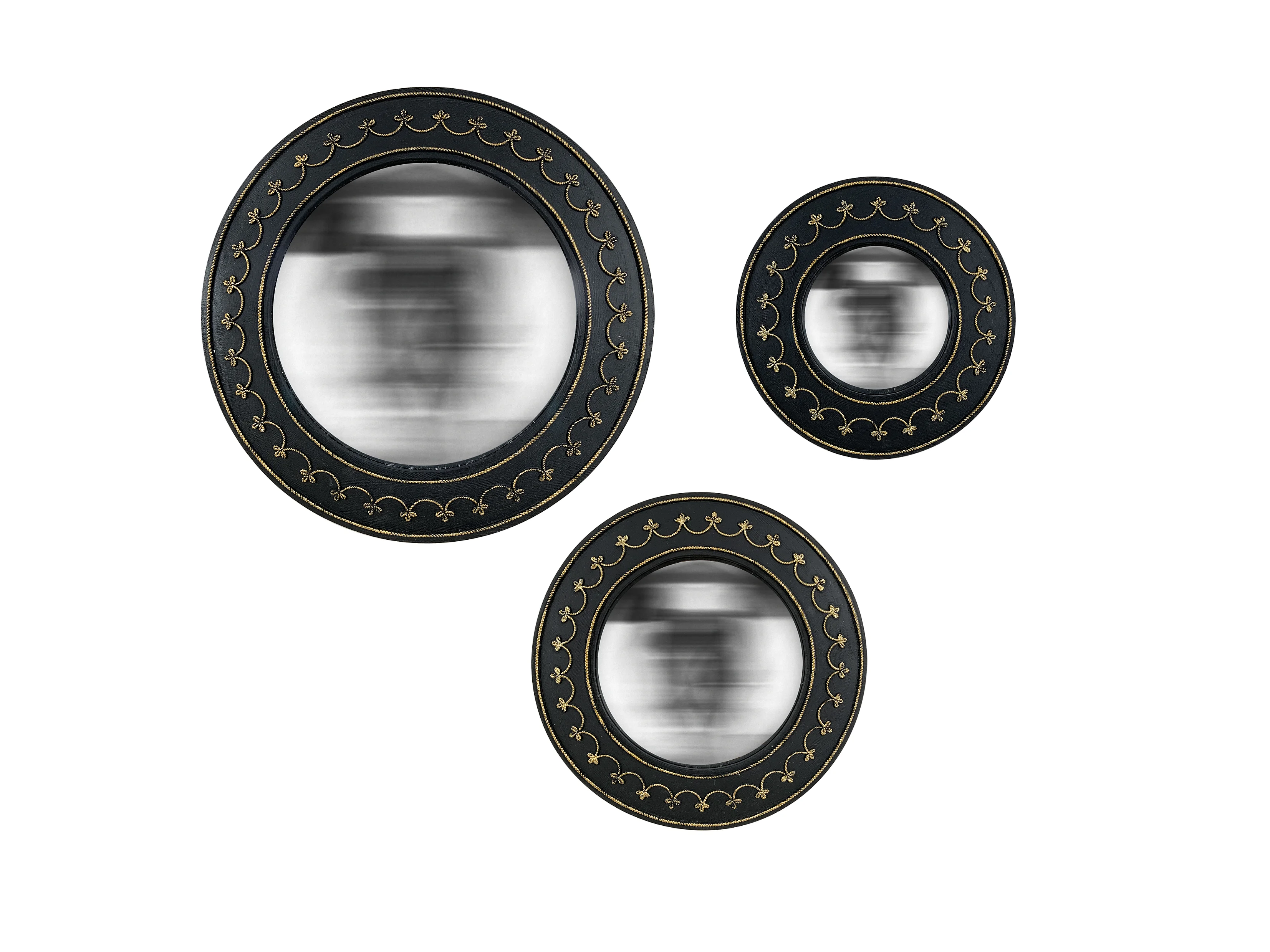 Lot de 3 miroirs ronds convexes noirs 16, 19, 23cm