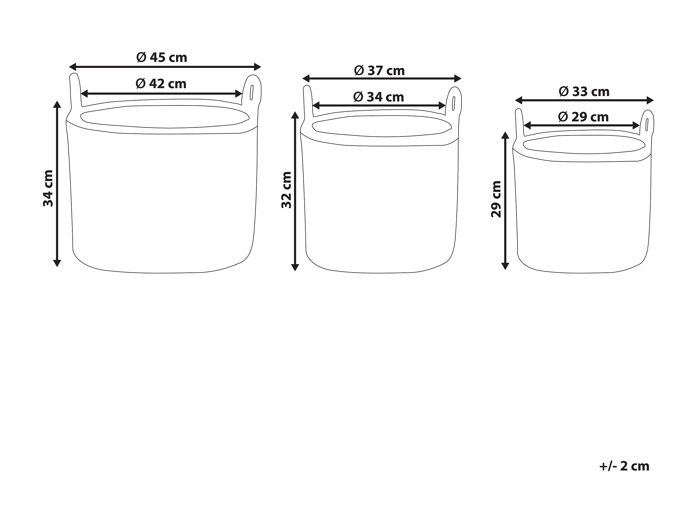 Lot de 3 pots de fleurs PENDULA 33/37/45 cm Naturel