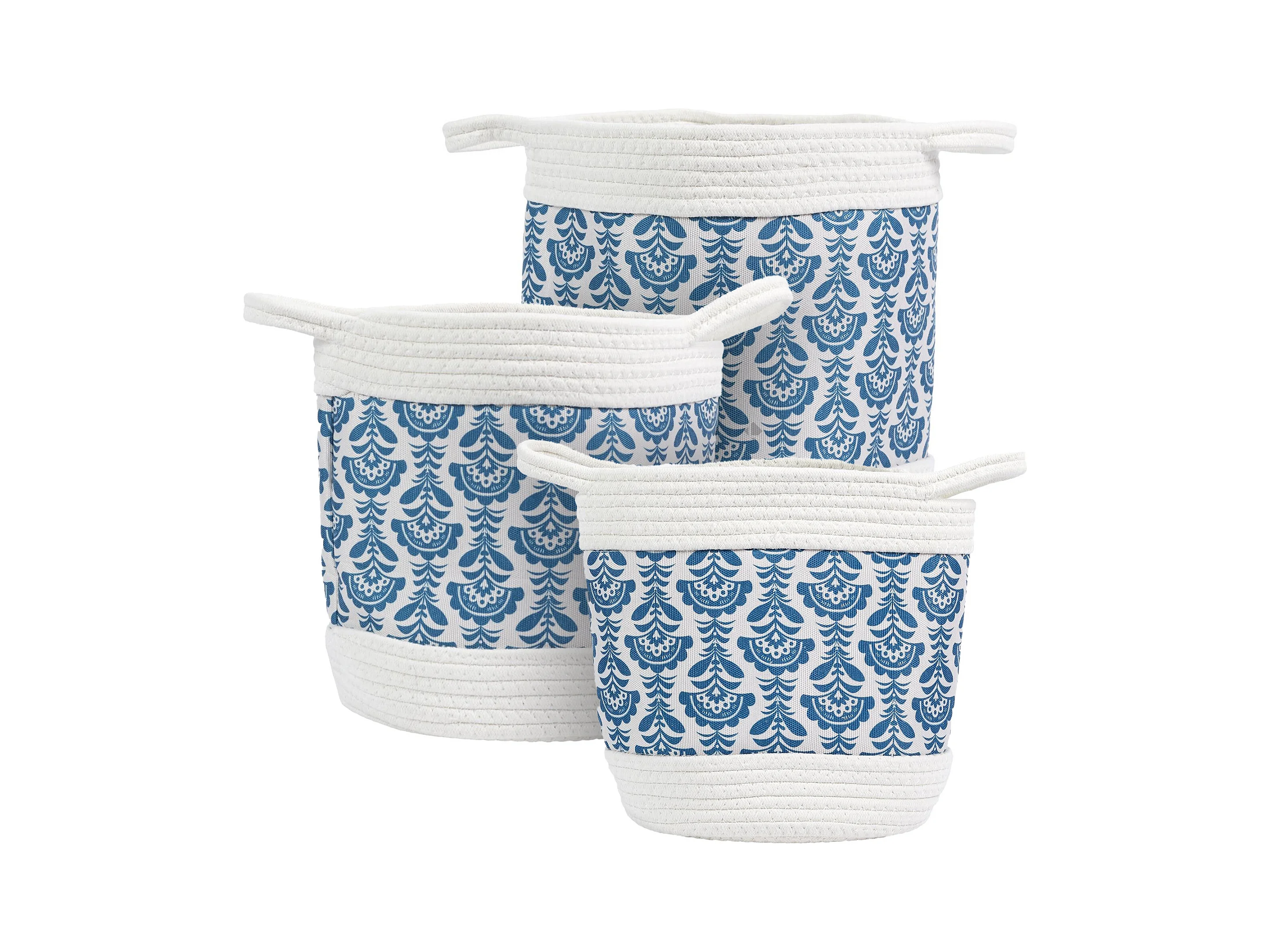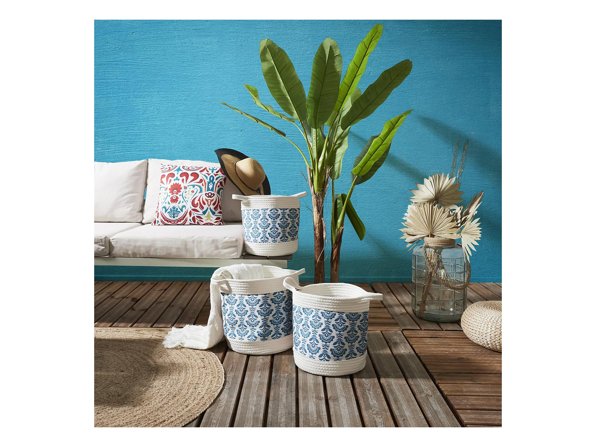Panier De Rangement Coton Jaipur X3 Bleu, Blanc
