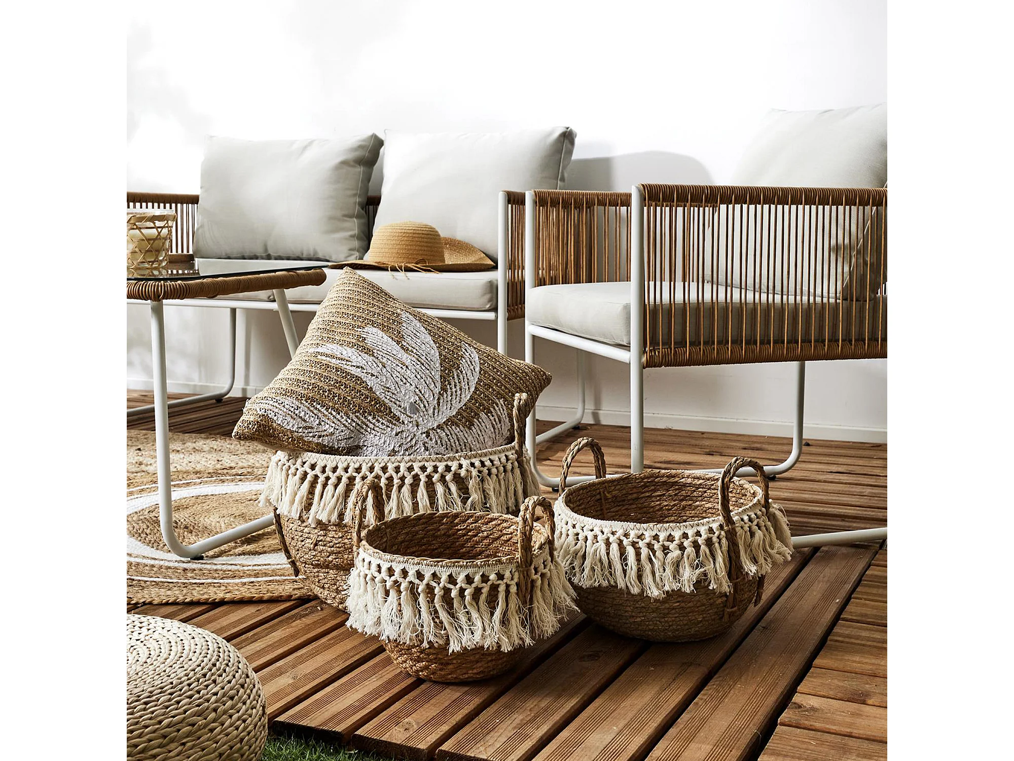 Lot de 2 paniers ronds corbeille 42 cm tissés en jacinthe d'eau – COVE