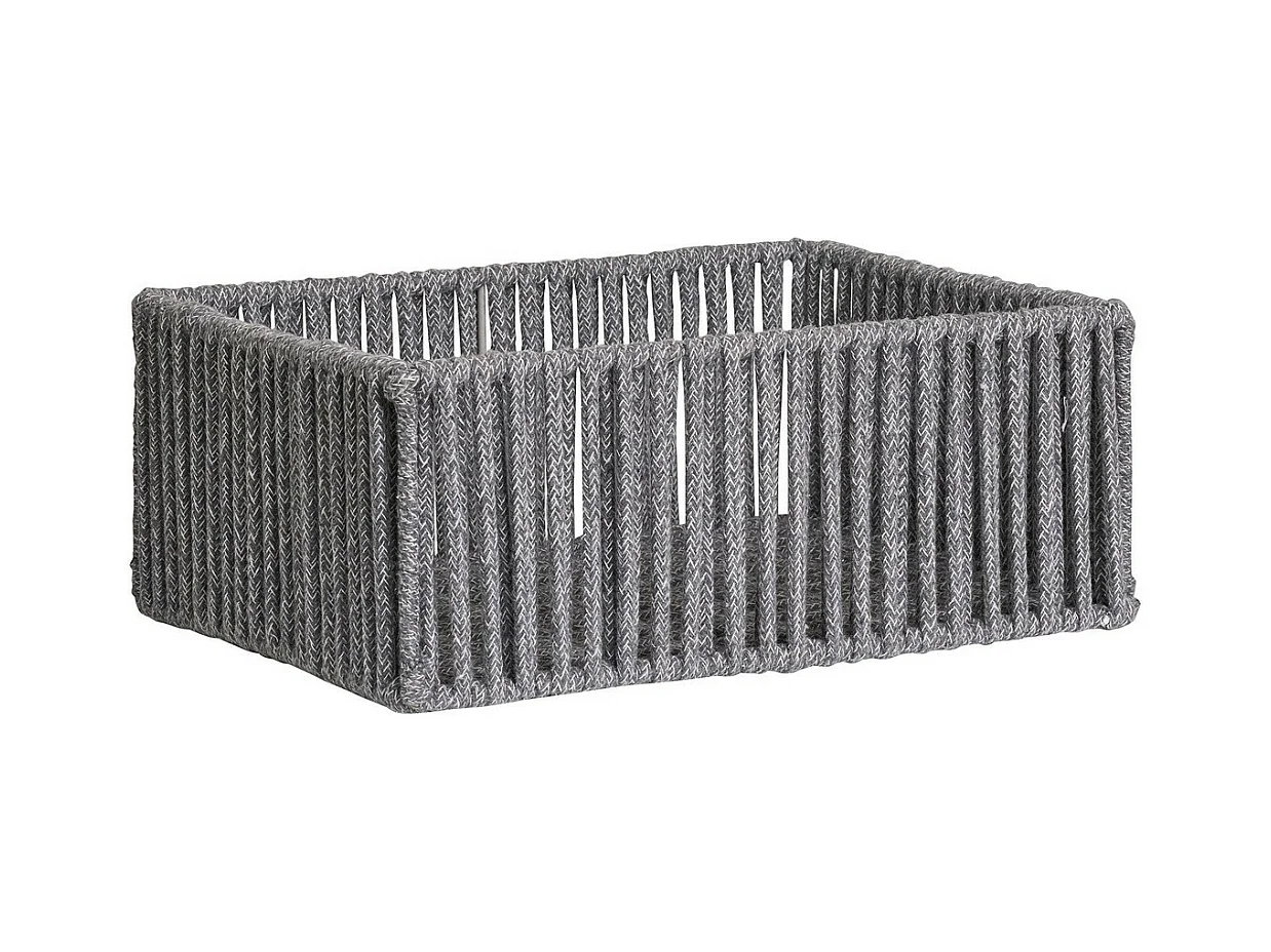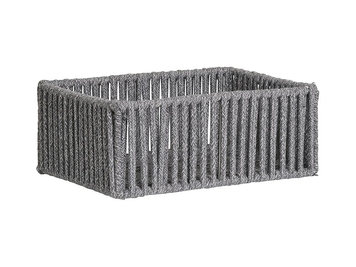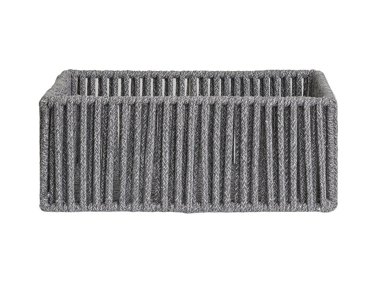 Set de 2 paniers rectangulaires en corde tressée gris et blanc - DUO