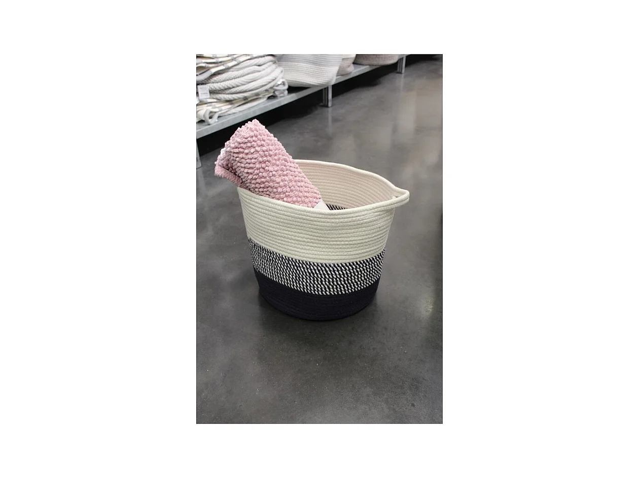 Set 3 paniers de rangement rond en corde tressée blanc bleu - COTON