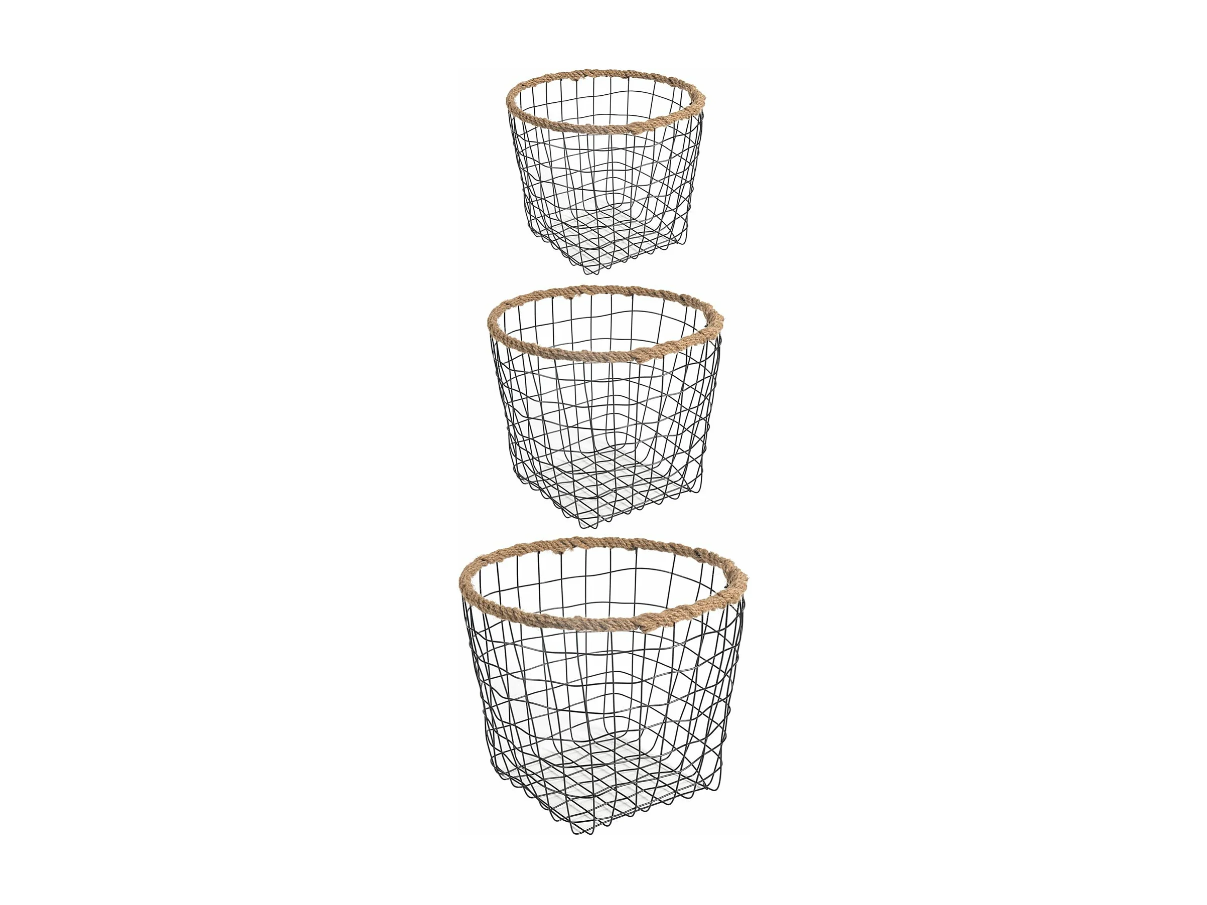 Lot de 3 paniers SINO corbeilles rondes de tailles différentes, en métal noir et chanvre tressé